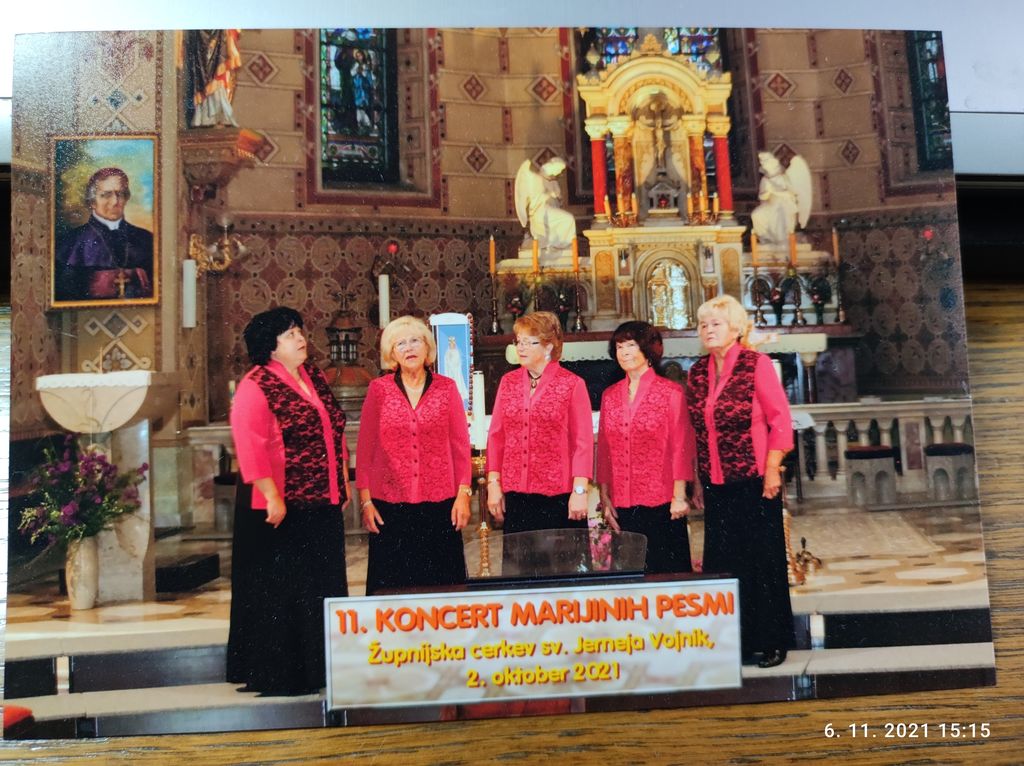 Na povabilo Katoliško-kulturnega društva "Ivan Šopar" in župnije Vojnik so članice KUD France Prešeren Vojnik, ljudske pevke "TAŠČICE" sodelovale na 11. koncertu Marijinih pesmi v cerkvi svetega Jerneja v Vojniku. Taščice že vsa leta zapovrstjo nastopajo na tej prireditvi, ki pa je bila letos zaradi epidemije malo okrnjena. Kljub temu so jo farani lepo sprejeli. Upajmo, da epidemija prihodnje leto ne bo več ovira za širjenje lepih Marijinih pesmi. Pevske skupine se trudijo, vestno in redno vadijo, ukrepi in bolezen pa lahko pokvarijo prireditev.