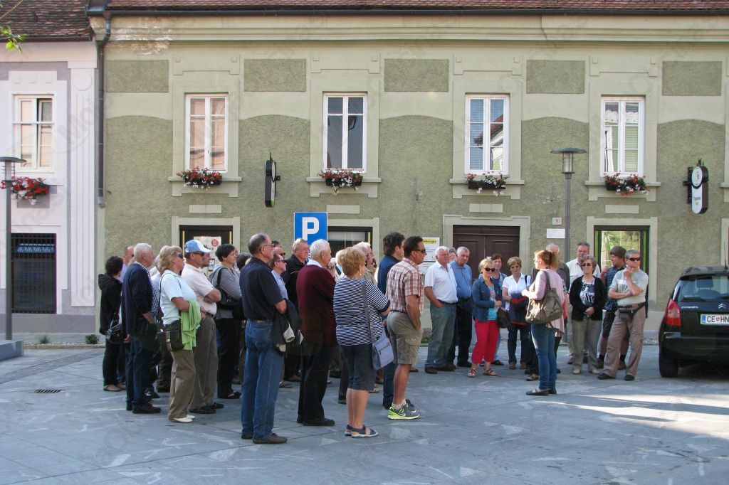 Pred ogledom obnovljenega gradu v Slovenski Bistrici so »dobrote iz prtljažnika« prišle še kako prav. Tudi kletar društvenega vina VOJNIČAN Miran Kovač je imel polne roke dela.