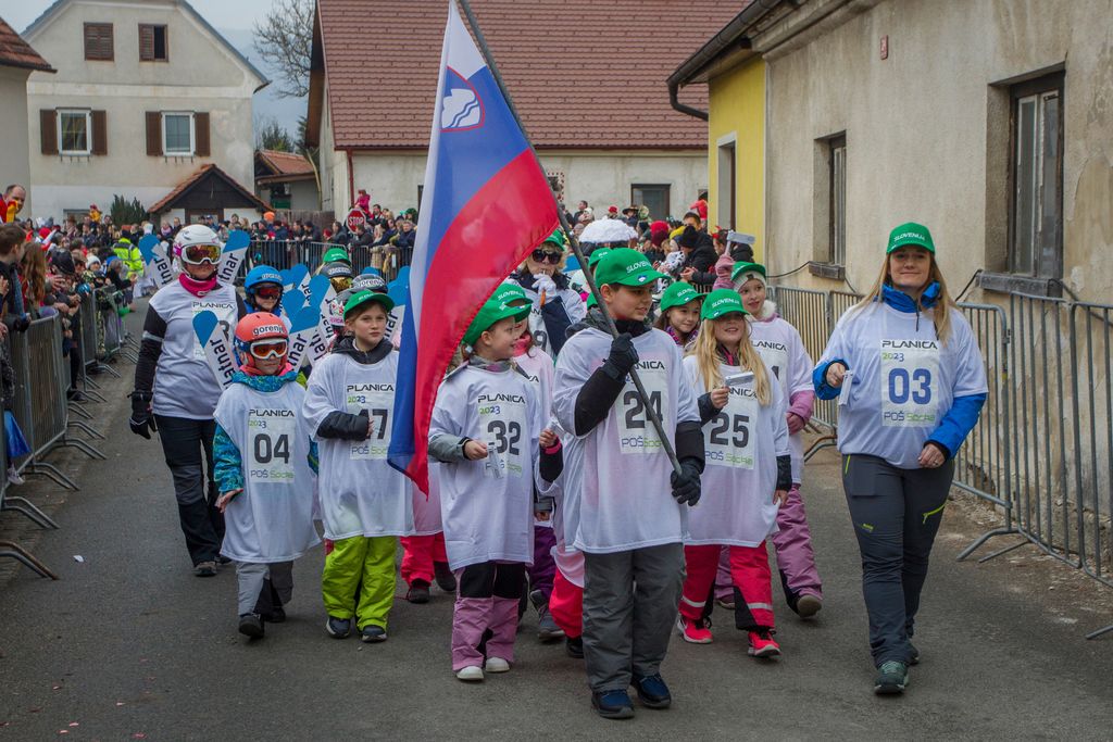 V polni pripravljenosti za svetovno prvenstvo v Planici so učenci POŠ Socka v spremstvu Suzane Jelenski Napotnik, Veronike Pirman in Sabine Skok |