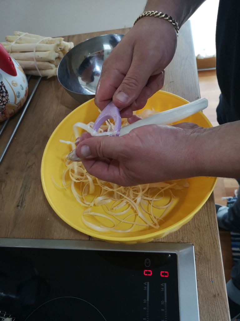 Šparglji so primerni za praktično vse termične obdelave: kuhanje, soparjenje, dušenje, praženje in cvrenje. Špargljem najprej odrežite spodnji oleseneli del in jih nato olupite. Pražite ali kuhajte jih le nekaj minut, da ohranite čim več hranilnih snovi. Če vam je okus špargljev všeč, jih lahko z malo domišljije pripravite na mnogo načinov, enega pa vam predstavljamo tudi mi. Aljoša se je odločil, da nam bo pripravil šparglje na njemu najljubši način in mi že nestrpno pričakujemo to kuharsko mojstrovino.