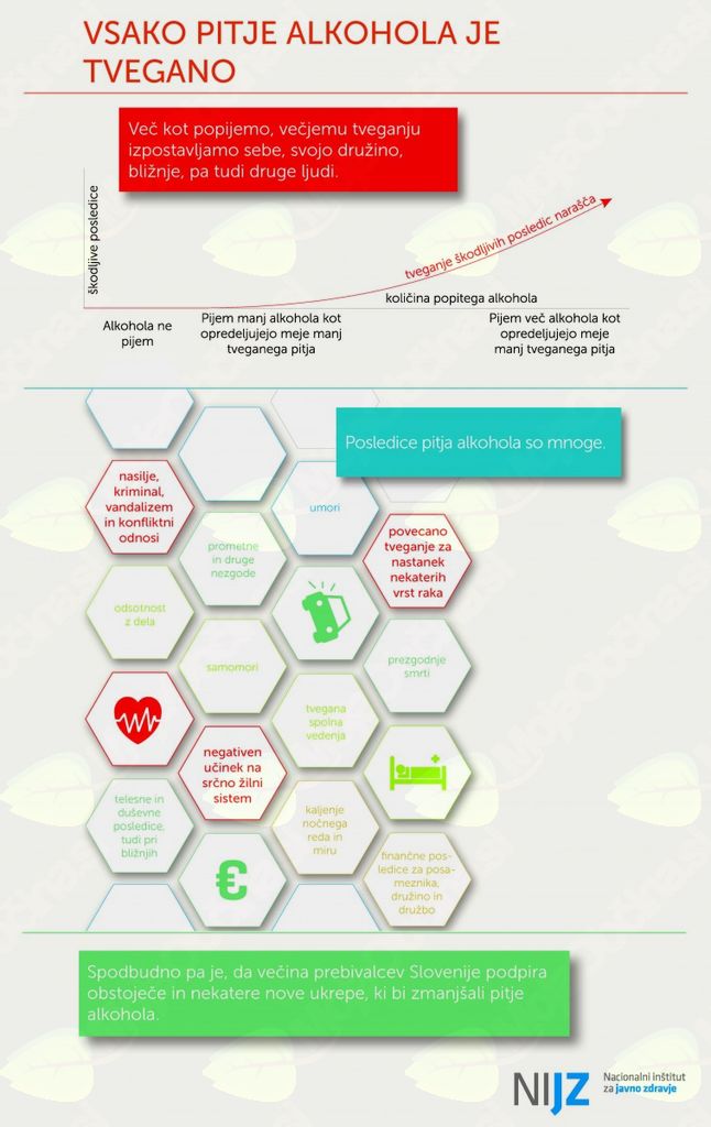 Samo zaradi bolezni in stanj, ki so izključno povezani z alkoholom, ter prometnih nezgod, ki jih povzročijo alkoholizirani vozniki, vsako leto v Sloveniji v povprečju umre vsaj 1000 oseb. Alkohol pa pogosto vodi tudi v druge oblike nasilja. Zato je osrednja tema letošnje 4. nacionalne konference o alkoholni politiki, ki jo organizira Nacionalni inštitut za javno zdravje (NIJZ) skupaj z Ministrstvom za zdravje in Svetovno zdravstveno organizacijo, povezava med alkoholom in nasiljem.