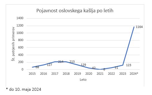 V letošnjem letu je bilo v Sloveniji potrjenih že 1164 primerov oslovskega kašlja. Tudi v nekaterih drugih evropskih državah beležijo večje izbruhe te bolezni, po podatkih Evropskega centra za preprečevanje in obvladovanje bolezni (ECDC) je bilo med januarjem in marcem 2024 v državah EU zabeleženih več kot 32.000 primerov oslovskega kašlja.