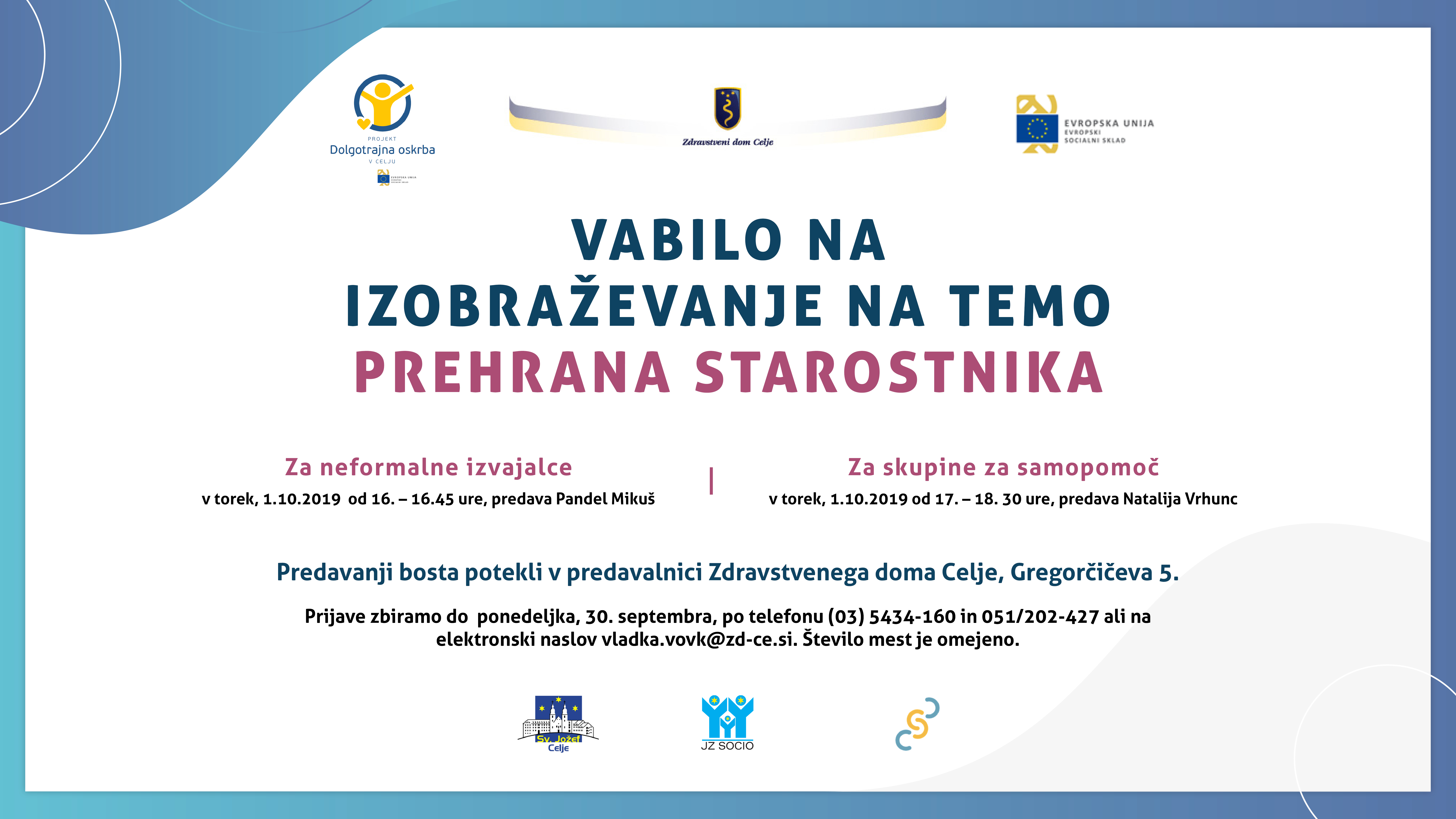 Vabilo na izobraževanje: Prehrana starostnika