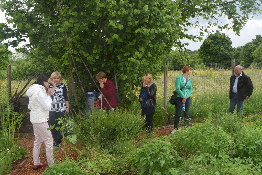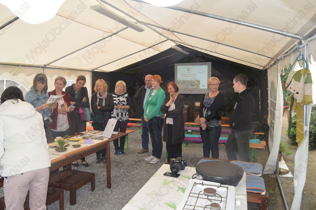 Srečanje se je začelo na zeliščno-etnološki domačiji Belajevi v vasi Kačice – Pared v Divači. Gre za manjšo kraško kmetijo v bližini Škocjanskih jam, ki jo je lastnica spremenila v ogleda vredno zanimivost. Na domačiji imajo promocijsko-degustacijski center kraškega šetraja in zaščitenih lokalnih proizvodov, ki jih gostom ponudijo v okviru kraške marende (malice). Tudi udeleženci srečanja smo poskusili lokalno kulinariko, začinjeno z avtohtonim zeliščem kraškega območja, kraškim šetrajem. Okus se dobro sklada s sirom, polento, maslom in kruhom, seveda pa gostitelji postrežejo še kraški teran in brkinsko žganje. Sledil je ogled zeliščnega vrta v obliki srca in obnovljenih prostorov stare kraške hiše.
