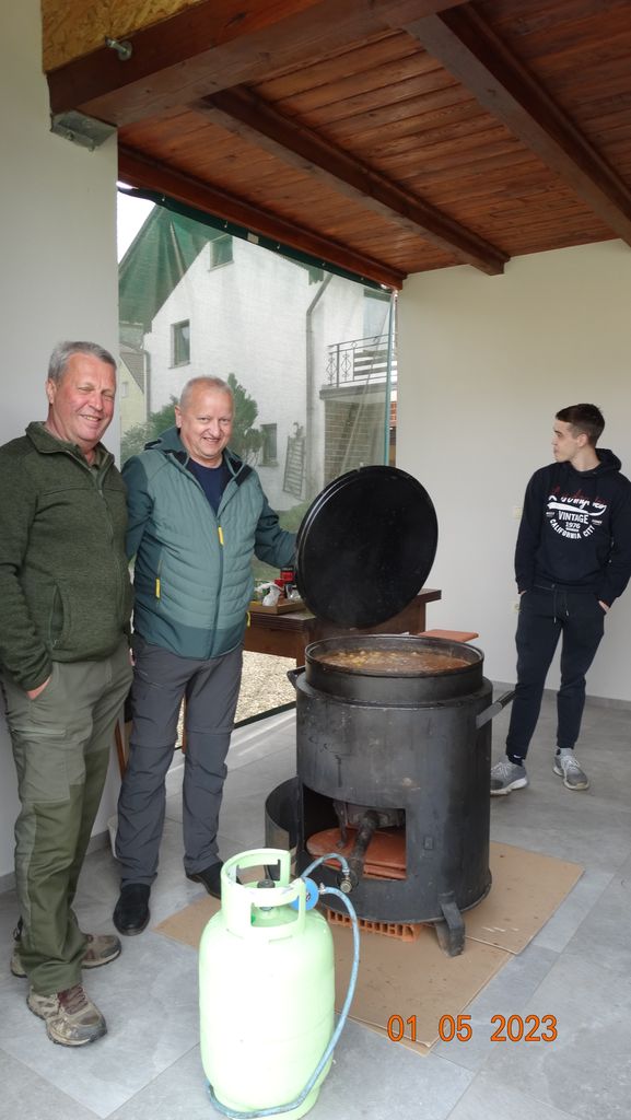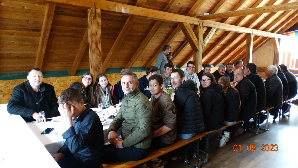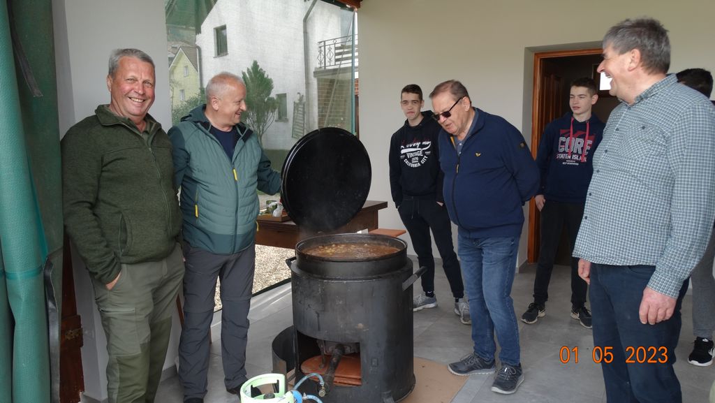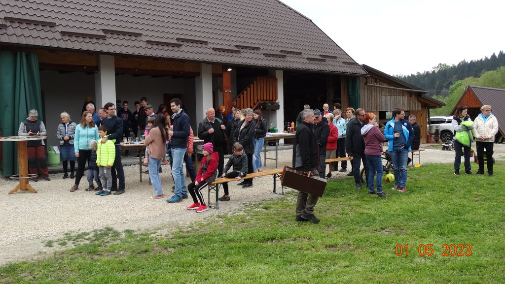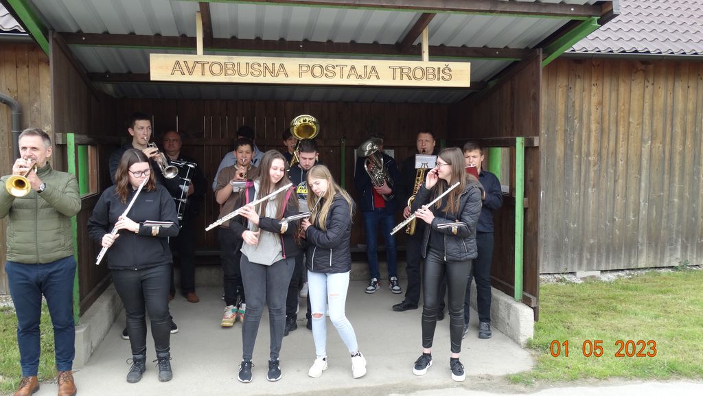 Že zgodaj zjutraj so na kmetiji PV Bohek zakurili pod kotel, v katerem smo se namenili kuhati bograč. Pripravljalo se je vaško srečanje po igranju budnice Godbe na pihala Nova Cerkev. Na naši avtobusni postaji smo naredili tablo. Naj se ve, kje je avtobusna postaja Trobiš. Sosedje smo se med seboj družili, poklepetali in obujali spomine, dokler se godbeniki niso pripeljali na njihovo tokratno zadnjo postajo igranja prvomajskih budnic. Lepo so zaigrali in Možneristi Lemberg –Lanšperk so streljali s svojimi »pujfercami«. Naj se ve, da je praznovanje. Da je bilo odprtje bolj slovesno, so godbeniki zaigrali še na avtobusni postaji. Nato smo se okrepčali z okusnim bogračem in pecivom ter nazdravili. Otroci so se igrali, hranili živali, ostali pa smo klepetali in si bili enotni, da je prav, da se ob takih dneh družimo, ohranjamo tradicijo in tkemo prijateljske, sosedske vezi. Tempo mladih družin je danes drugačen in velikokrat je čas le za besedi "dober dan". Res smo preživeli prelep dan, hvala najbolj aktivnim sosedom, Godbi na pihala Nova Cerkev, možnaristom in vsem vam, dragi sosedje. Ostanite zdravi in vse dobro vam želim z željo, da se medsebojni prijateljski odnosi širijo in ohranjajo, saj smo drug drugemu potrebni.