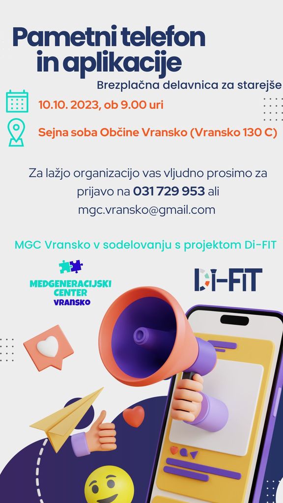Projekt: DiFIT - Digitalni fitnes dolgožive družbe.
