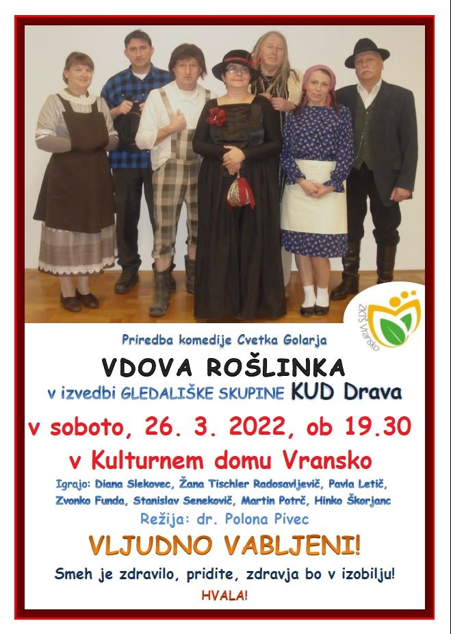 Diana Slekovec se je v vlogi vdove Rošlinke, ki se ogreje za mladega soseda Janeza, igra ga Martin Potrč, tokrat morala spopasti z interpretacijo lika, ki skozi igro doživi največji razvoj. V boju s predsodki in licemerstvom, značilnim za kmečko podeželje, mora igralsko obvladovati spremembe razpoloženja in duševno zrasti. V vlogi njenega svetovalca v srčnih zadevah, romarja Balantača, ki ga najbolj zanimata pijača in hrana, nastopa Zvonko Funda. Pavla Letič igra Rošlinkino svakinjo Verico, Stanislav Senekovič njenega sina Tinčka in Hinko Škorjanc župana Jernejca. V vlogi hčerke Manice, za katero se v resnici ogreva Janez, pa se je tokrat preizkusila Žana Tischler.