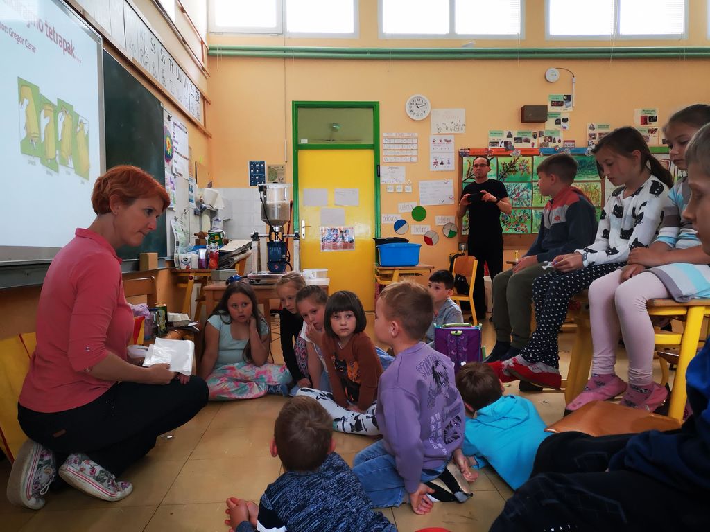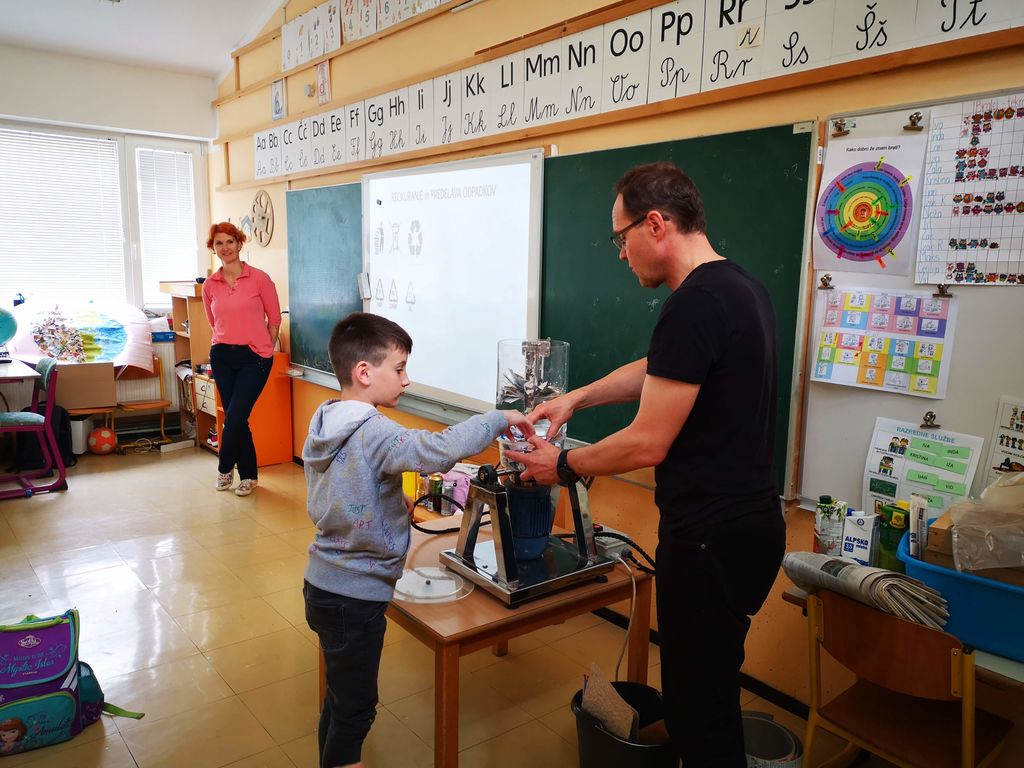 Vse to smo spoznavali in spoznali v zanimivi uri. Zelo veseli smo bili, ko smo z gospodom Gregorjem Cerarjem iz tetrapak embalaže izdelali čisto pravi papir. Ob koncu ure pa smo s pomočjo vprašanj ponovili, kar smo se naučili in prejeli praktične nagrade. Prav vsi smo se naučili nekaj novega, tako učenci kot učiteljice.