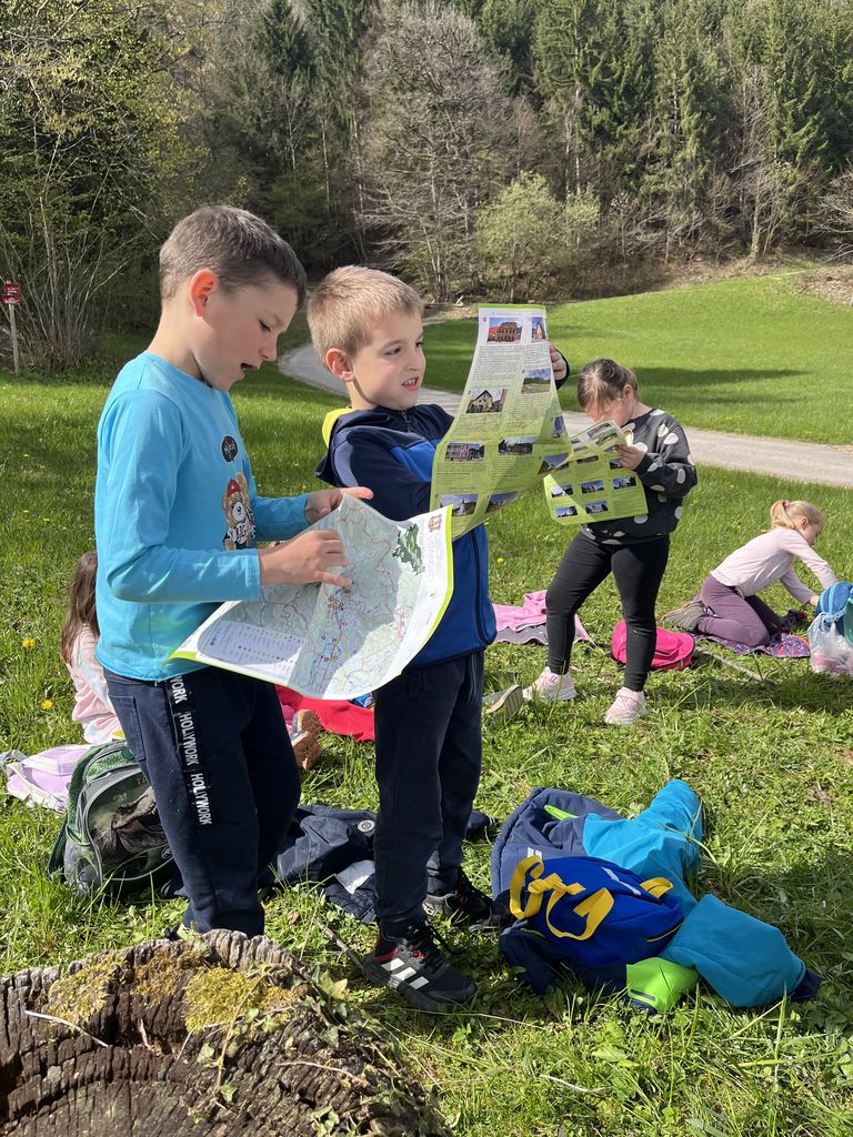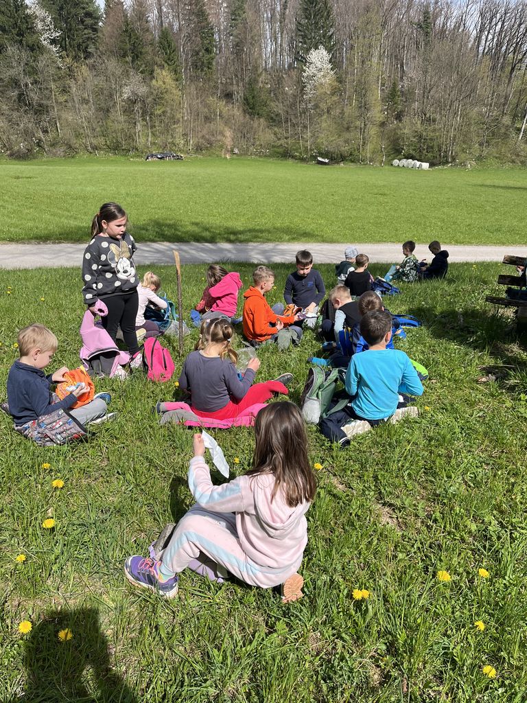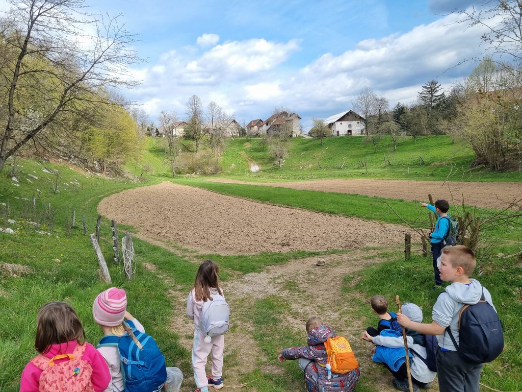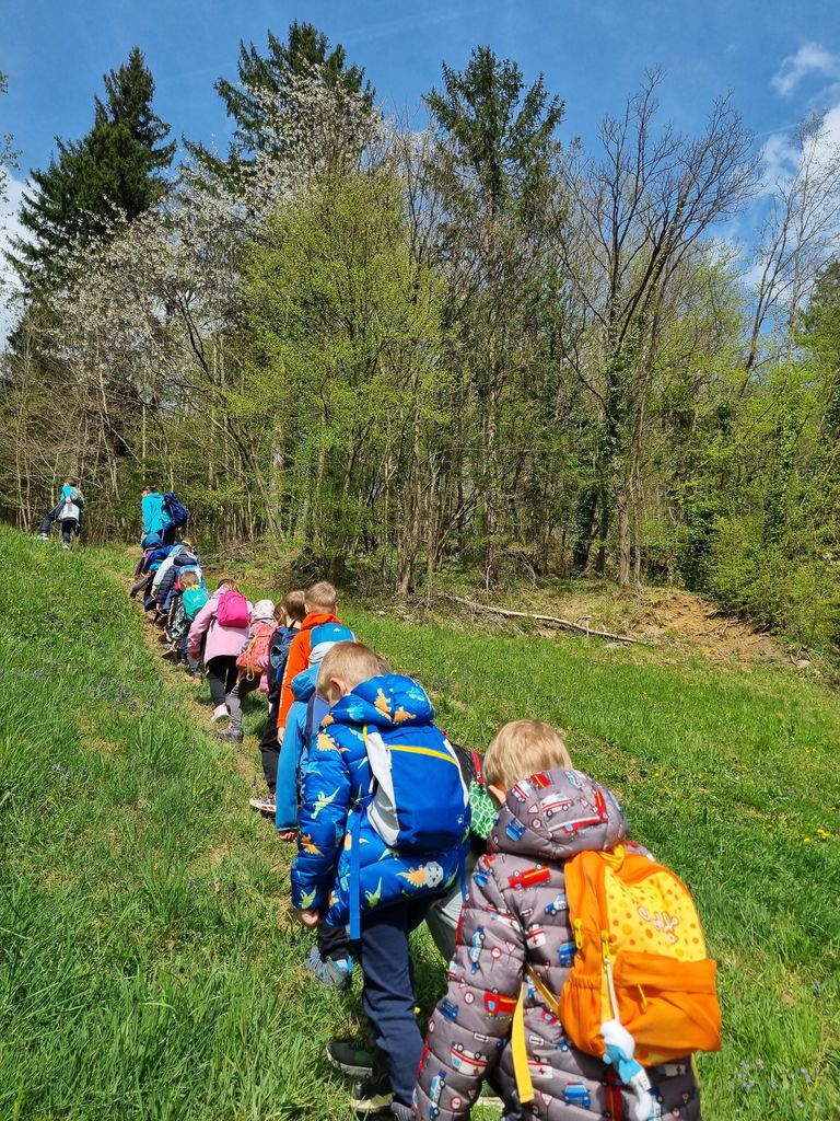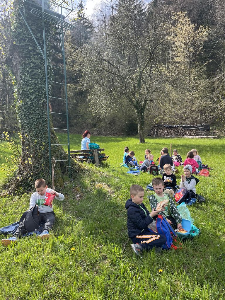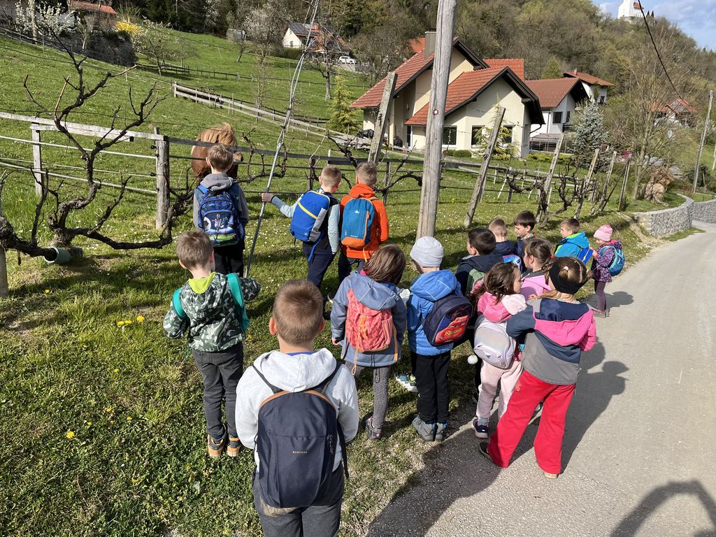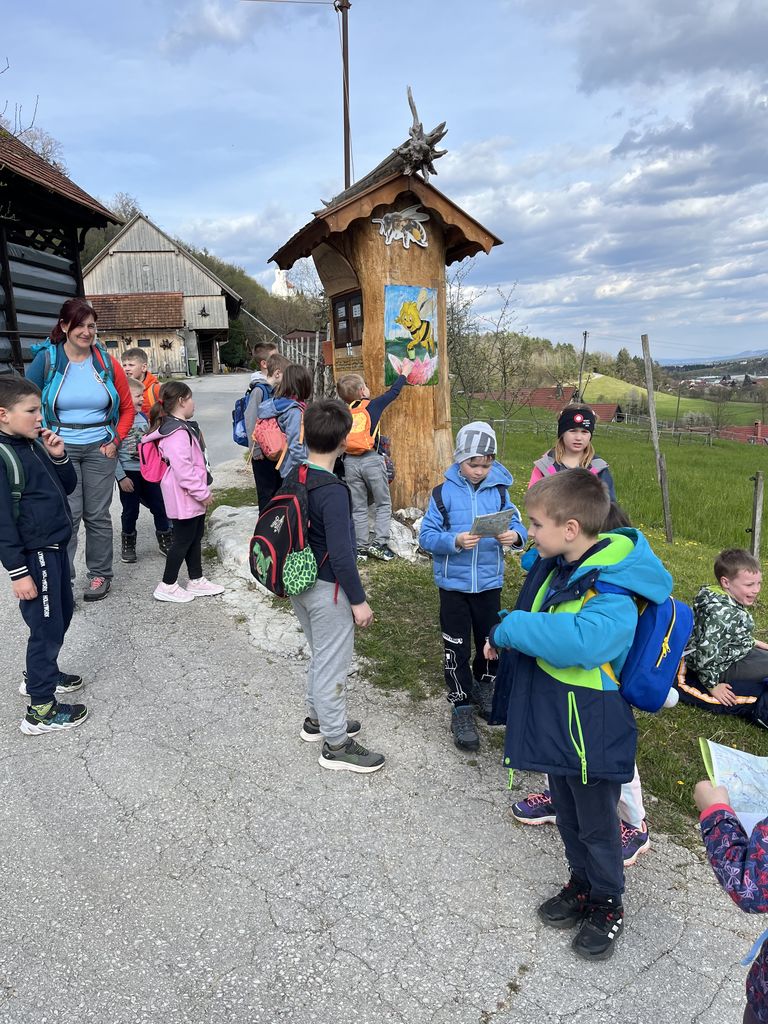 Z učenci prvega in drugega razreda smo se 10. aprila 2025 odpravili na planinski pohod. Ker planinci zelo neradi hodimo po asfaltiranih cestah, smo se jim uspešno izogibali. Del poti je vodil tudi prvošolec Tilen, ki je skupino varno peljal po travnikih in gozdu, kamor hodi s svojimi starši in starimi starši na delo.