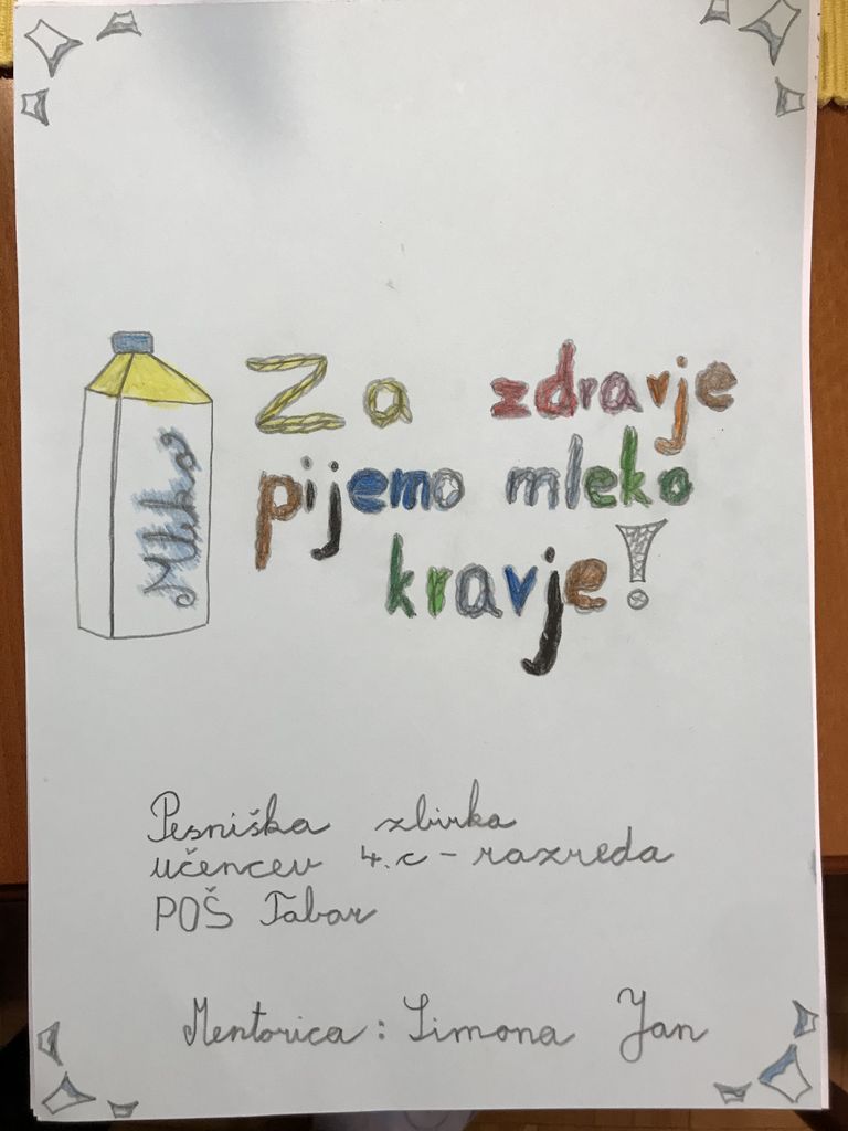 V okviru programa EKOŠOLE smo v lanskem šolskem letu letošnji petošolci Podružnične šole Tabor sodelovali v projektu z naslovom Mlekastično! Izberem domače. V okviru tega smo pri pouku raziskovali pomen mleka in mlečnih izdelkov za naše zdravje ter pomembnost nakupa lokalnih mlečnih izdelkov in mleka. Na koncu pa smo izdali še svojo pesniško zbirko z naslovom: »Za zdravje pijmo mleko kravje!« Pesniško zbirko si lahko ogledate in preberete v knjižnici naše šole POŠ Tabor.