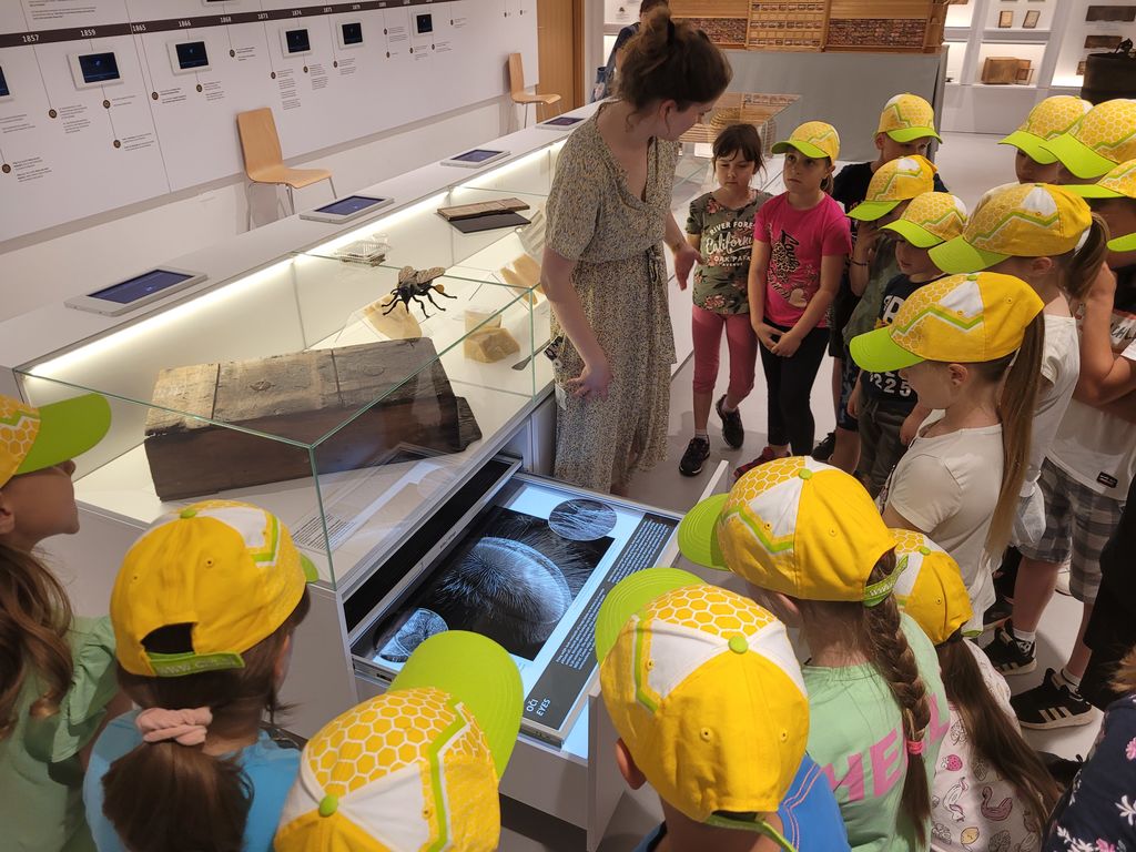 Konec šolskega leta so se šolski čebelarji odpravili na strokovno ekskurzijo. Sprehodili smo se skozi Višnjo Goro in si ogledali Hišo kranjske čebele. Prijazno osebje nas je popeljalo skozi štiri tematske sobe. Vsaka od njih je prikazovala zgodovino čebelarstva na Slovenskem s poudarkom na dejavnostih kranjske čebele. Najbolj zanimiva je bila soba, katere stene so bile zastekleni panji čebel. Čebele so poleg satnic oblikovale zanimive oblike satja, iskali smo trote, čebele delavke in panjske čebele. Vodenje je bilo atraktivno, saj je bilo povezano z interaktivnimi načini prikazovanja preko slike in zvoka. Posladkali smo se z medenjaki s kostanjevim medom, si nadeli čebelarsko obleko in občudovali čebelnjak in nasad medovitih cvetlic.