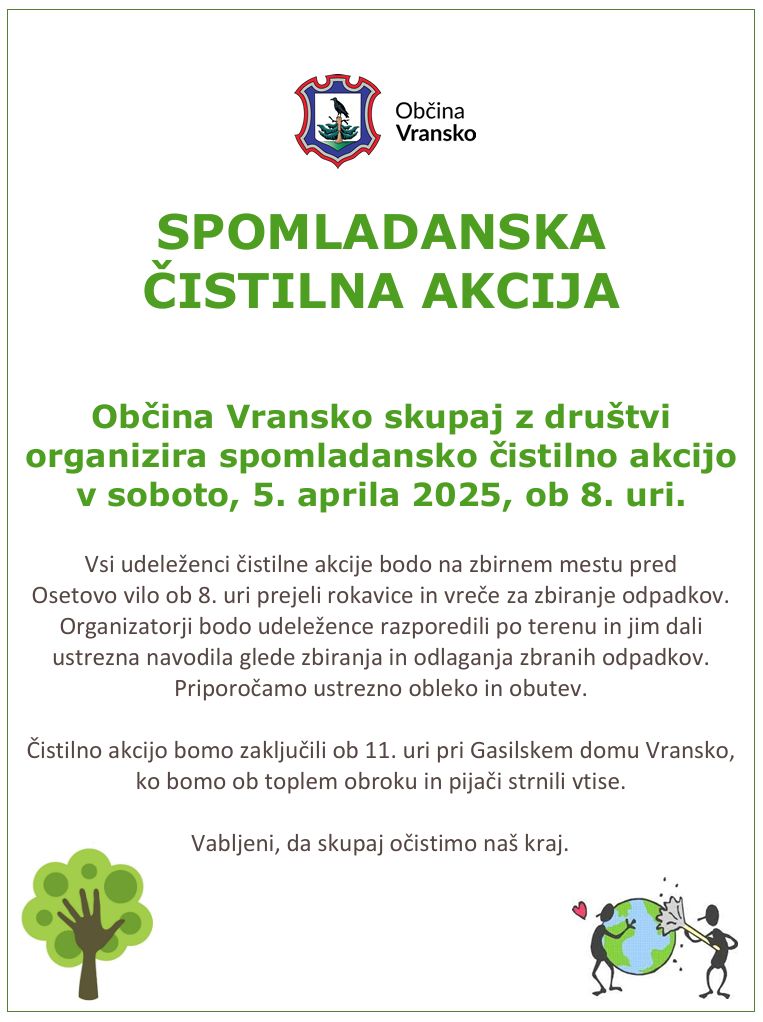 Občina Vransko skupaj z društvi organizira spomladansko čistilno akcijo