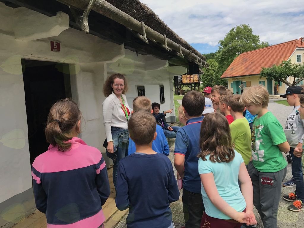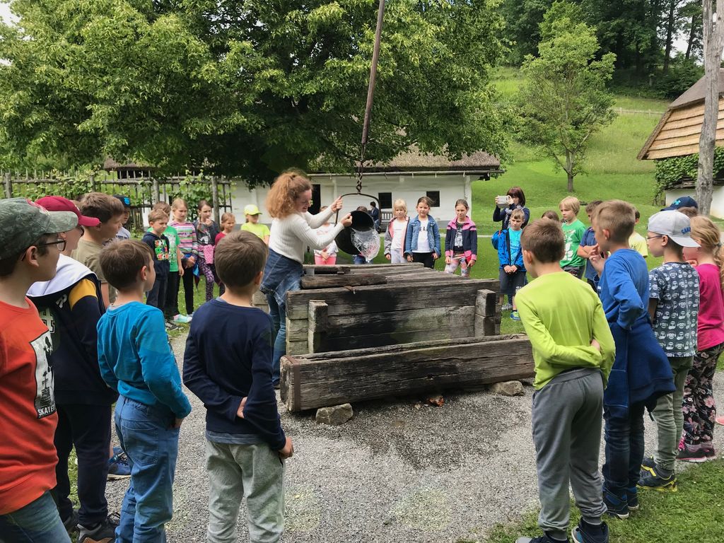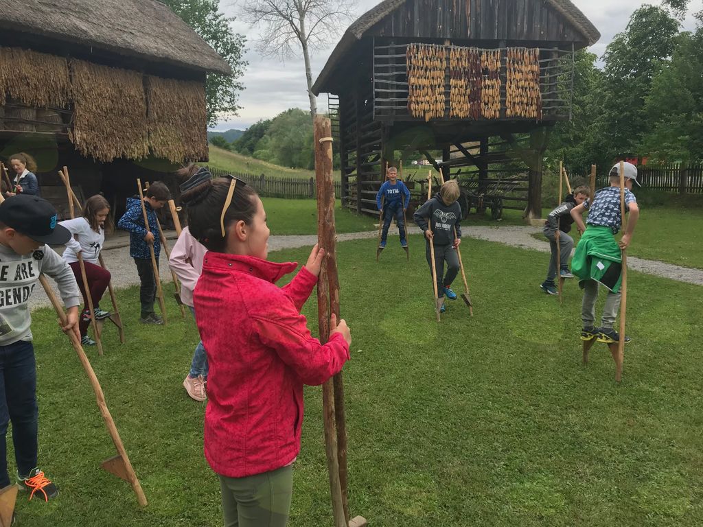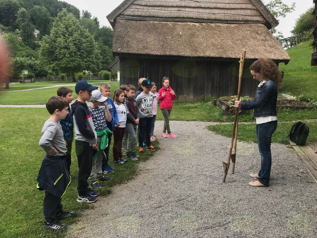 Ko smo prišli v muzej na prostem, smo najprej pojedli malico in odšli v tri delavnice. V prvi smo hodili s hoduljami, v drugi delavnici smo pekli kruh, nato pa smo odšli k čebelarju izdelat sveče. Sledil je ogled vsega ostalega v muzeju na prostem kot so hlev, kovačija, vodnjak, hiša, trgovčeva hiša, svinjak in kozolec. Nato smo šli v trgovino, kjer smo si lahko kaj kupili.