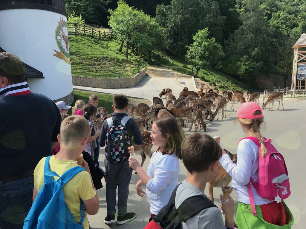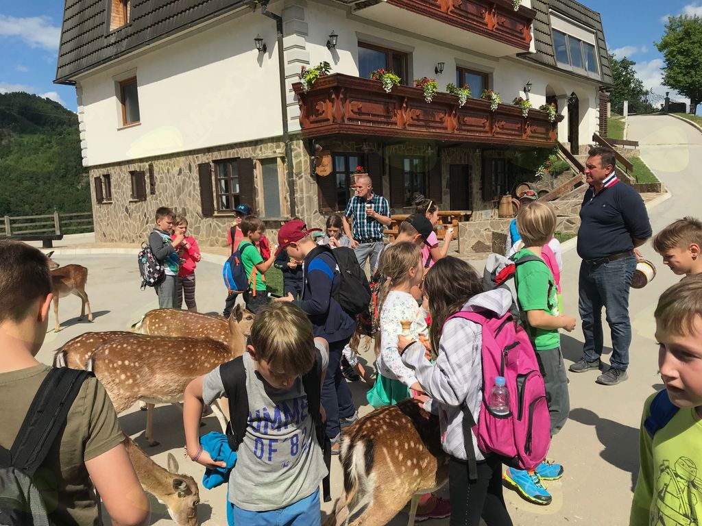 V četrtek, 17. 5. 2018, smo prišli v šolo. V razredu nam je učiteljica pobrala denar za kosilo. Kasneje smo se obuli in oblekli za na pot. Na avtobusni postaji smo počakali šolski prevoz. Peljali smo se slabi dve uri do Rogatca. Tam smo imeli delavnice, naredili smo si kruh, svečo in hodili s hoduljami. Spremljevalka v muzeju nam je povedala, pokazala in predstavila stvari v muzeju na prostem. Meni je bilo všeč, ko smo pekli kruh. Po ogledu smo odšli nazaj v avtobus in se odpeljali na Jelenov Greben, kjer smo pojedli kosilo. Kasneje smo hranili jelene, košute in muflone. Kupili smo si tudi spominke. Na jelenovem Grebenu sem spoznal, da jeleni razumejo tudi rusko. Z Jelenovega Grebena smo šli do čokoladnice, tam nam je gospod razložil, kako naredijo čokolado. Lahko smo si kupili čokolado, nato pa smo odšli v šolo in počakali na starše.