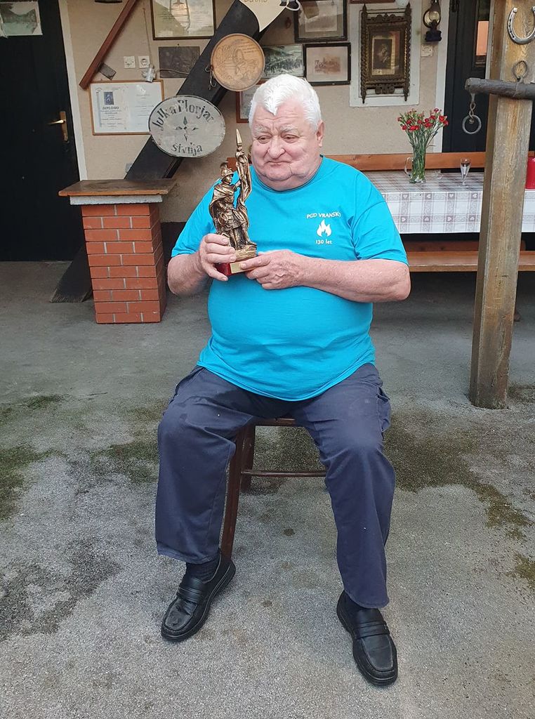 Bil sem zelo presenečen, ko je prišel Vlado in mi povedal, da so me na Gasilski zvezi Žalec predlagali. Pred štirimi leti, ko smo kupili novo vozilo, sem nazadnje dobil priznanje za zasluge s strani PGD Vransko. To sedaj je pa čisto zadnji kipec, ki smo ga dobili samo trije. Podelitev je bila 2. oktobra letos v Celju. Res se čudim, od 180 gasilskih zvez nas izberejo samo 7 in izbrali so mene. Še kar ne morem verjeti. Najprej so me ocenjevali po točkah na gasilski zvezi v Žalcu, potem so to še enkrat pretehtali v Ljubljani. Dobil sem pošto, naj pridem v Celje na podelitev. Mi je bilo kar nerodno, ko so mi čestitali. Res si nisem mislil, da bom to doživel.