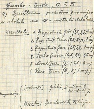 Na »uradni« tekmi (27. 2. 1955) so skakali za Vransko: S. Lipovšek, R. Vrbovšek, J. Pusovnik in V. Cestnik. Tabor pa so zastopali: M. Marko, T. Marko, Z. Golob in A. Ribič.
