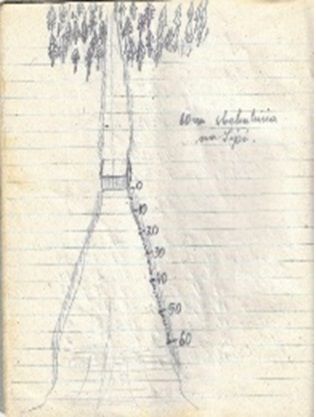 Do mesta, kjer naj bi bila zgrajena 60-metrska skakalnica, zgrajena pa je bila samo 25-metrska, sva se avgusta letos zapeljala s Florjanom Slapnikom iz Vologe, ki se še spominja pripovedi o 60-metrski skakalnici.