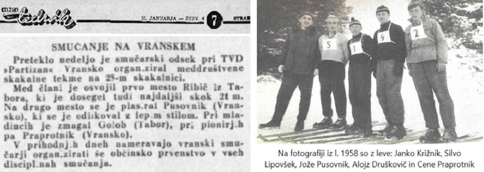 V beležki J. Križnika je tudi podatek o nastopu Jožeta Pusovnika - Joškija in Franca Rebrška na državnem prvenstvu na 80-metrski skakalnici v Planici, kjer je Joški je dosegel solidno 29. mesto. Leto kasneje pa je na državnem prvenstvu v Črni na Koroškem, na enako veliki skakalnici, s 54 metri postavil vranski rekord.