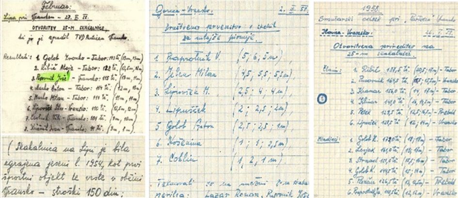 Zato sem avgusta letos po dolgem času obiskal vse nekdanje lokacije, kjer so bile zgrajene skakalnice: od Lipe preko Gorice do Ilovice in Brodov. Moj spomin/pozabo glede skakalnic pa so mi osvežili in potrdili tudi zapisi iz beležk Janka Križnika, ki mi jih je poslala v vpogled nekdanja Vranšanka Polona Kremžar, poročena Lipovšek.