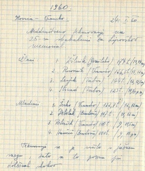 · 2. februarja 1958 v Lokah pri Taboru tekmovali A. Druškovič, Joški, S. Lipovšek;