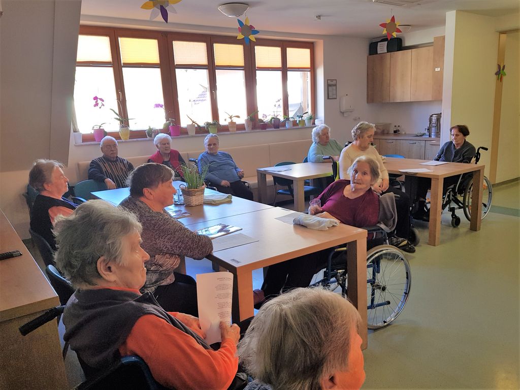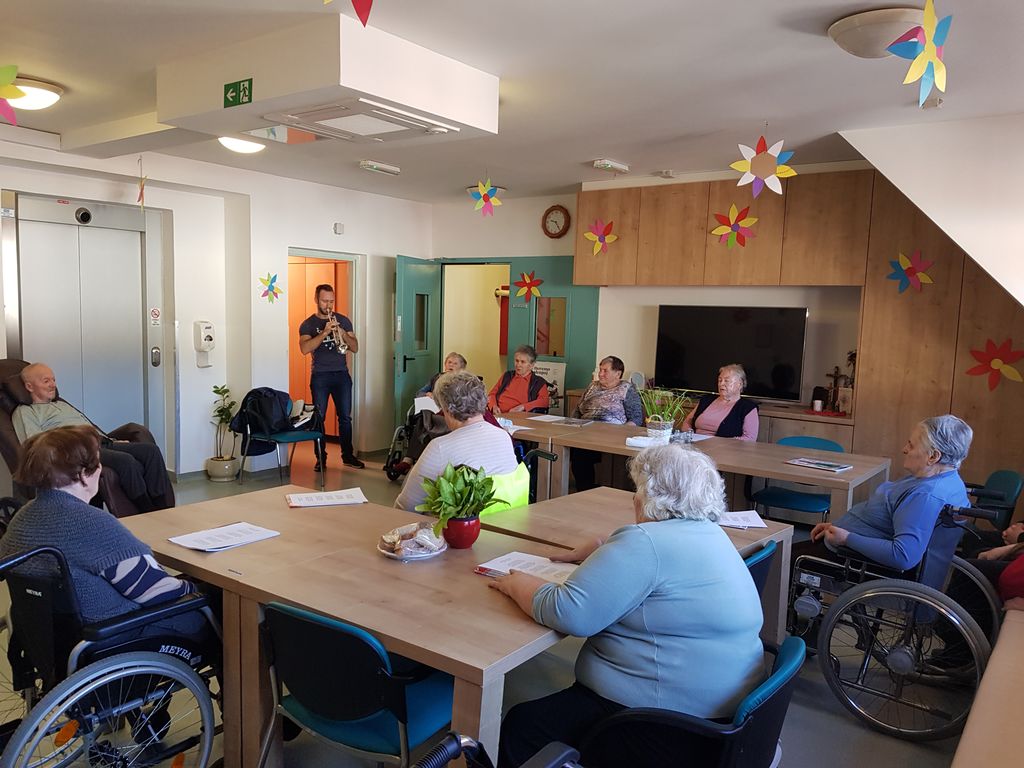 Po velikonočnih praznikih, 2. aprila 2024, smo se s stanovalci Našega doma na Vranskem spet zbrali na mesečnem bralnem druženju. Tokrat je imela glavno besedo glasba. Kratka praznična besedila smo prepletali z instrumentalno glasbo, ki jo je na trobenti izvajal sodelavec Andrej Perger. Zaigral nam je Zabučale gore, Kje so tiste stezice, Kam le čas beži, Mrzel veter in druge, že skoraj ponarodele skladbe, ob katerih smo tudi zapeli. Prijetno druženje je hitro minilo in se že veselimo prihodnjega v mesecu maju.