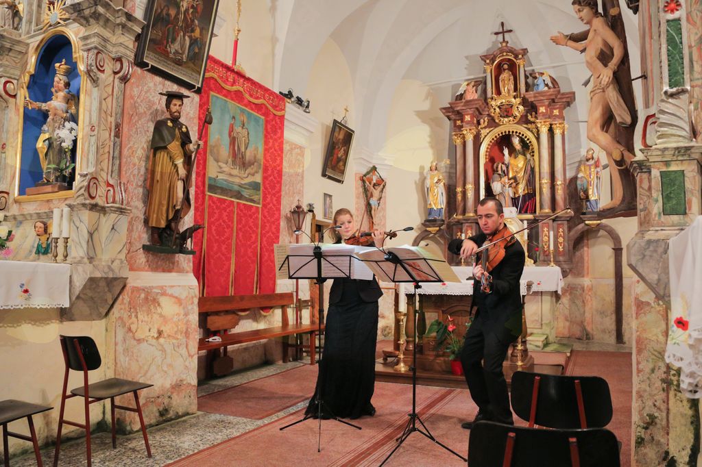 Zadnji koncert v sklopu Vranskih poletnih večerov sta odigrala mednarodno uveljavljena mlada violinistka Tanja Sonc in violist Ribal Molaeb iz Libanona. Čeprav se letošnjega septembra spominjamo po deževnih in turobnih dneh, je bilo predzadnjo septembrsko soboto v Stopniku prijetno in suho. Temperatura v cerkvi je bila nižja od zunanje, a mlada glasbenika nista komplicirala, vedoč, da bosta takoj s prvo skladbo ogrela sebe in publiko.