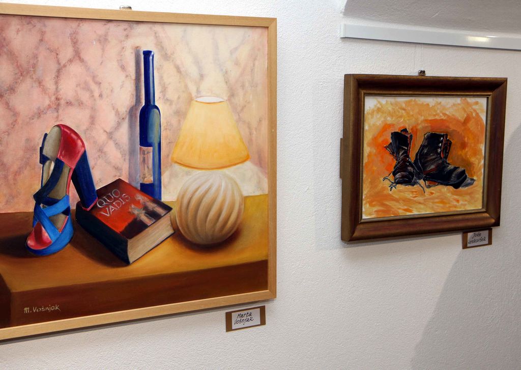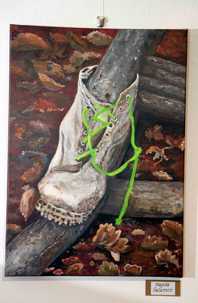 Likovna sekcija KUD Žalec letos praznuje 20-letnico delovanja. Za razstavo Korak v jesen so upodobili različna obuvala. O zgodovini le-teh je na odprtju govoril tudi njihov umetniški vodja, mag. Uroš Potočnik. Likovniki se predstavljajo s pestro paleto obuval, upodobili so vse, od copat do planinskih čevljev. Čevlji na slikah so tako pristni, da gledalca zamika, da bi jih vzel v roke in si jih nadel na noge.