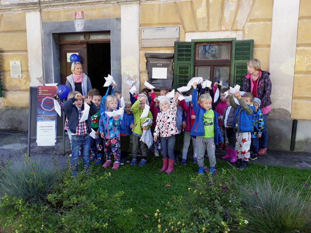 Zadnjo septembrsko sredo so tako Schwentnerjevo hišo obiskali otroci Vrtca Vransko, skupina 4-5, z vzgojiteljicama in člani DUTŽO. Najmlajši so najprej prisluhnili pravljici o potočku, ki je preskakoval čez kamenje, prebujal naravo in razveseljeval otroke, ki so po njem spuščali ladjice. Ko je bilo pravljice konec, so ladjice tudi izdelali. Nekaj so jih preluknjali in nanje privezali koščke lubja ali kamenčke. Nato so odšli do bližnjega potoka Merinščica in ladjice spustili. Otroci so jih opazovali in ugotovili, da so se tiste s kamenčki potopile, ostale pa so skupaj s potokom izginile v daljavi. Tako so na zabaven in hkrati poučen način zaključili DEKD in TKD.