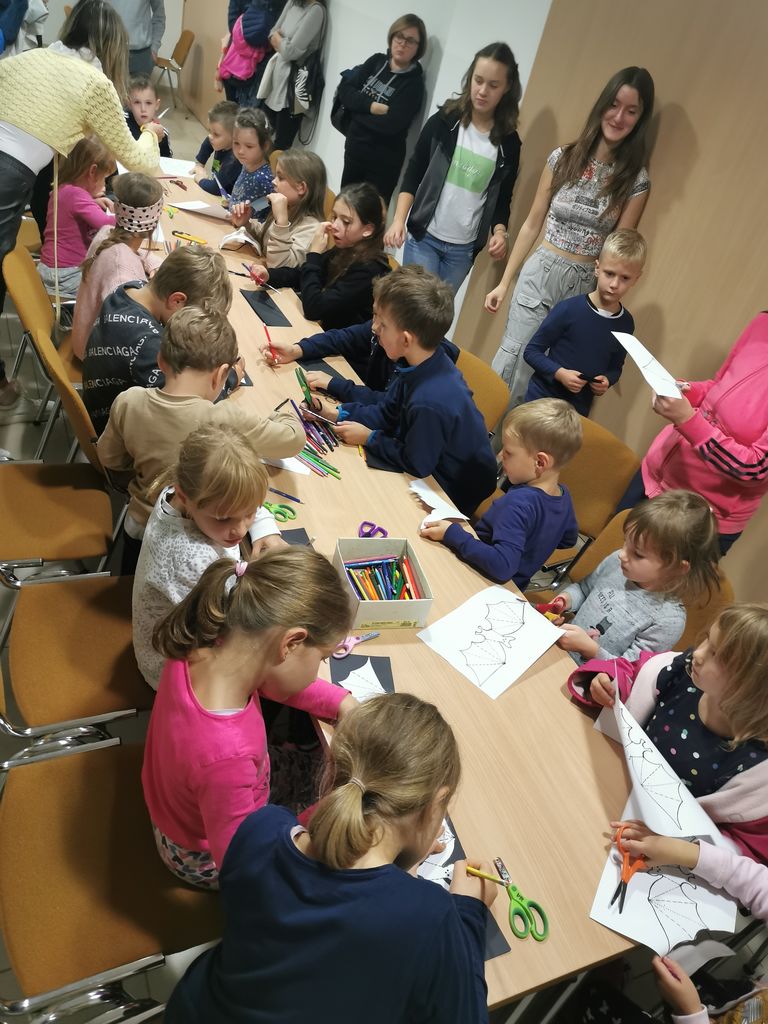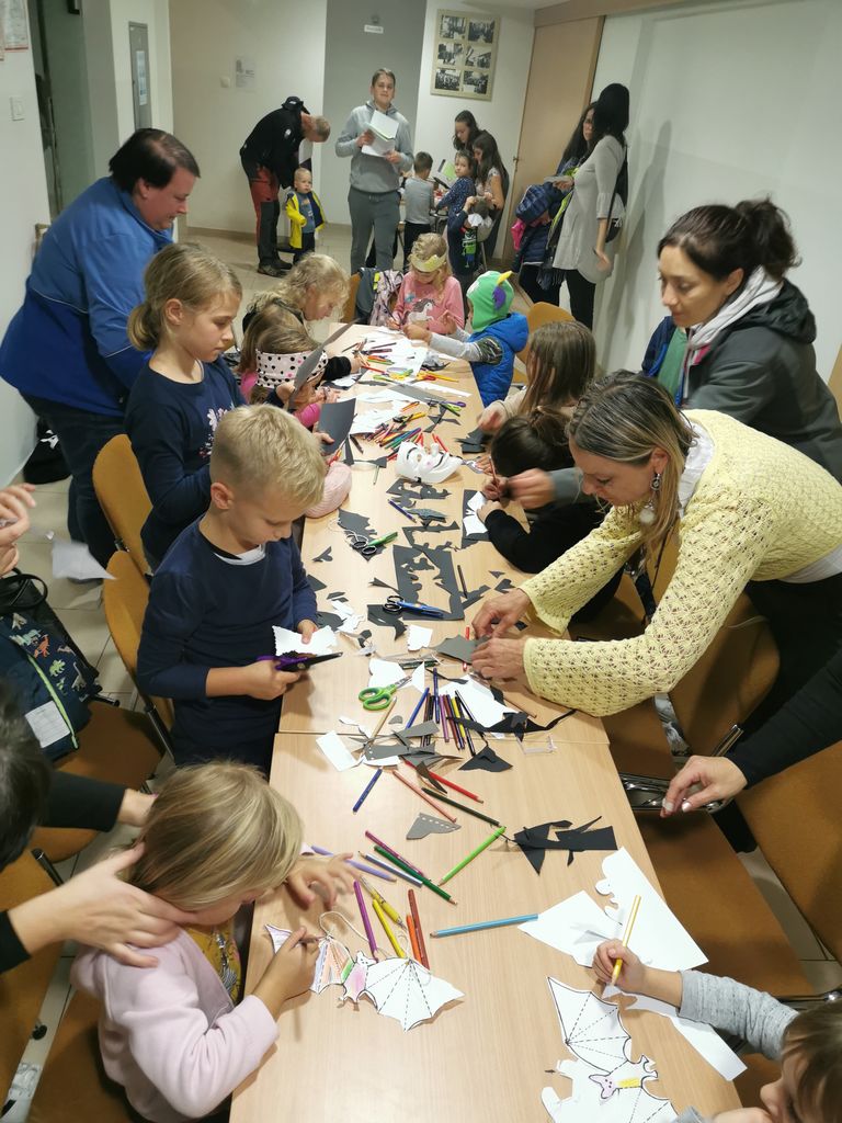 Na oktobrski pravljični uri v torek, 24. oktobra 2023, je bilo vse obrnjeno na glavo. Čarovnice, ki običajno s copranjem nagajajo in uganjajo norčije, so bile zvečer še kar v šoli, dve izmed njih, Kuštra in Štunfa pa sta prišli na obisk v Občinsko knjižnico Vransko in nam zaupali, kaj sta ušpičili v šoli za čarovnice. Takole je bilo: