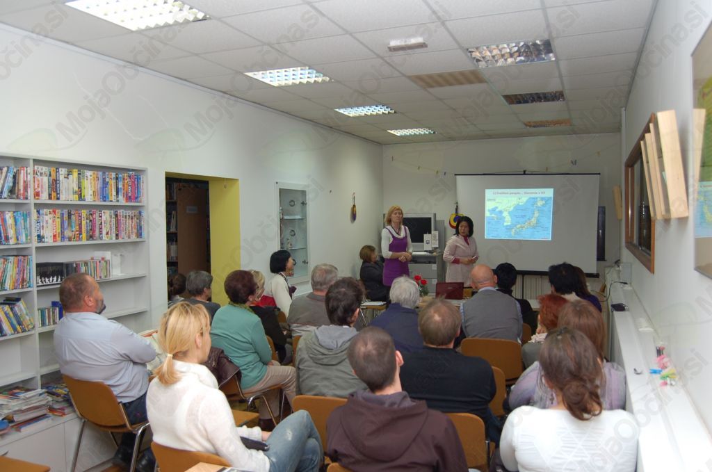 Japonka Reiko Kitič in Korejka Wan-Hee Cho Irgl sta nam v petek, 16. novembra, pripravili izviren vpogled v značaj svojih domovin. Japonska, dežela vzhajajočega sonca, vzbuja hrepenenje mnogim popotnikom in ljubiteljem preproste lepote in estetike. Dežela kljub izjemno hitremu modernemu razvoju še vedno ni opustila starih tradicij, ki so postale njen simbol. Japonke v kimonih, ikebane, suši, praznik cvetenja češenj, gora Fudžijama, ki jo častijo z izjemnim spoštovanjem, Japonska s hitrimi vlaki, imenovanimi šinkansen. Nasprotje temu je moderna Japonska s hitrim tempom življenja, delovnim ritmom in disciplino.