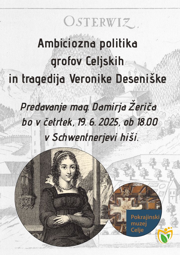 V Schwentnerjevi hiši smo v četrtek, 19. junija, prisluhnili zanimivemu predavanju mag. Damirja Žeriča o Ambiciozni politiki grofov Celjskih in tragediji Veronike Deseniške. Predavanje je bilo organizirano kot spremljevalni dogodek k razstavi Spomin Slovenije, kjer so vključene tudi listine grofov Celjskih kot najpomembnejše plemiške družine na Slovenskem.