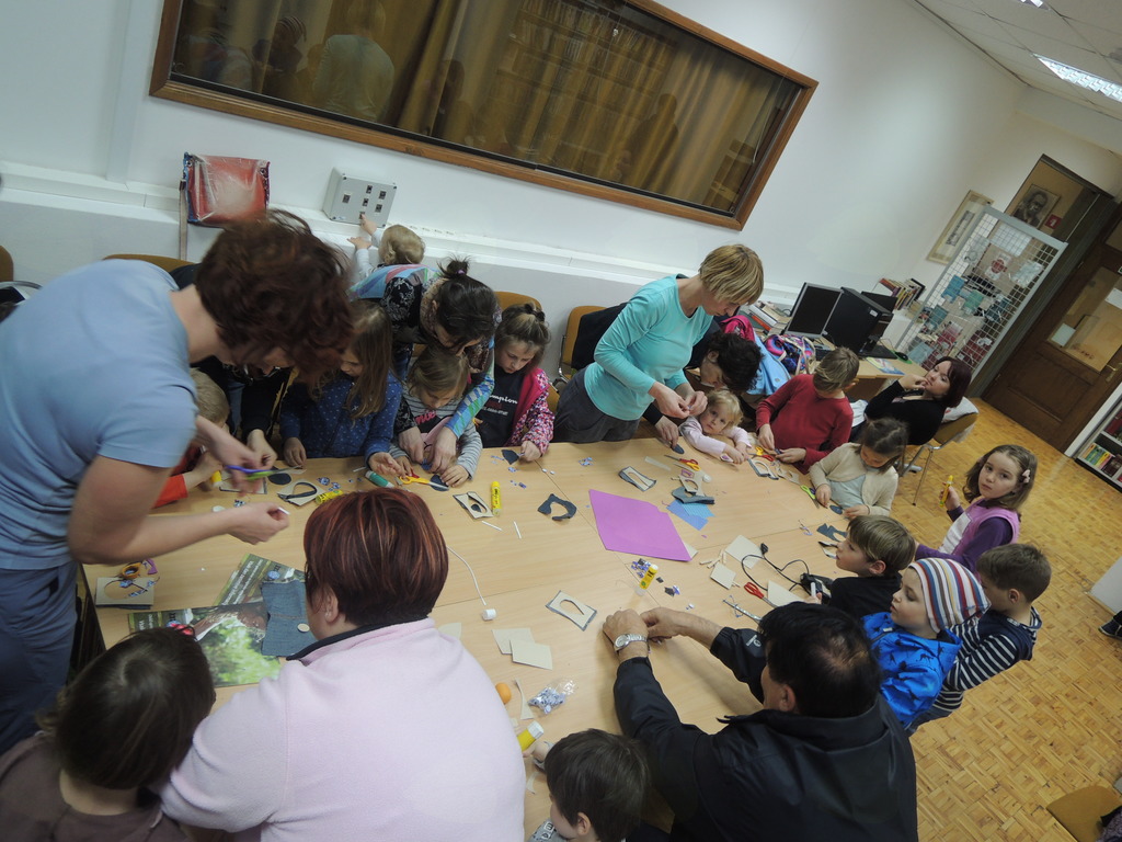 V torek, 21. marca, nas je v knjižnici obiskala Sapramiška. Prišla je s svojimi prijatelji žabo, zajčkom in veveričko. Z nami so delili zgodbo o nesrečnem miškinem zobu, ki se zlomil, ko je miška pogumno zagriznila v lešnik. A s pravimi prijatelji se nesrečni pripetljaji vedno uspešno končajo. Če pa zraven še zapojemo in zaigramo, gre vse še lažje.