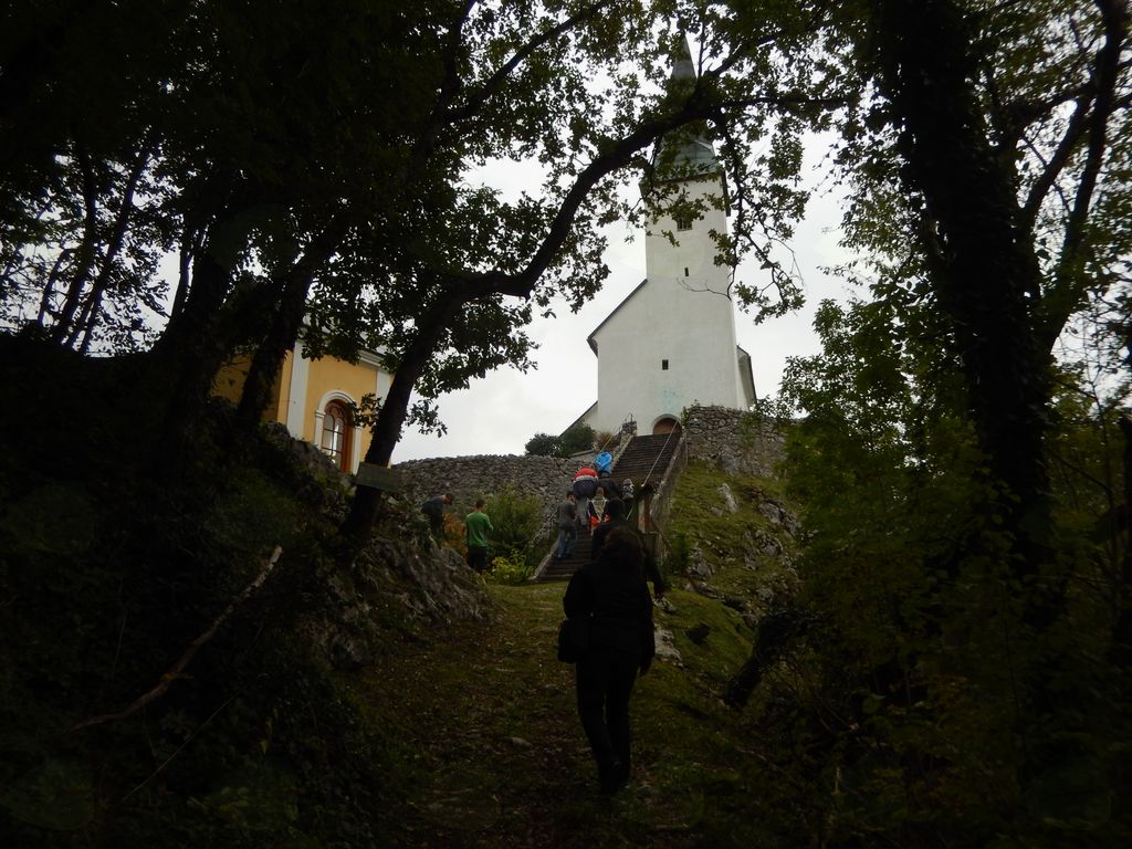 Sledil je vzpon po stari romarski poti do cerkve sv. Jeronima. Gre za edinstveno cerkev z mogočnim taborskim obzidjem, ki se dviga nad Vranskim. Okoli cerkve je več vrtač, med katerimi izstopa delana vrtača. To kaže na to, da so ljudje vedno izkoristili tudi manj ugodne površine za kmetovanje. Odličen razgled na trg Vransko pa je dal priložnost zgodovinski razlagi o kraju.