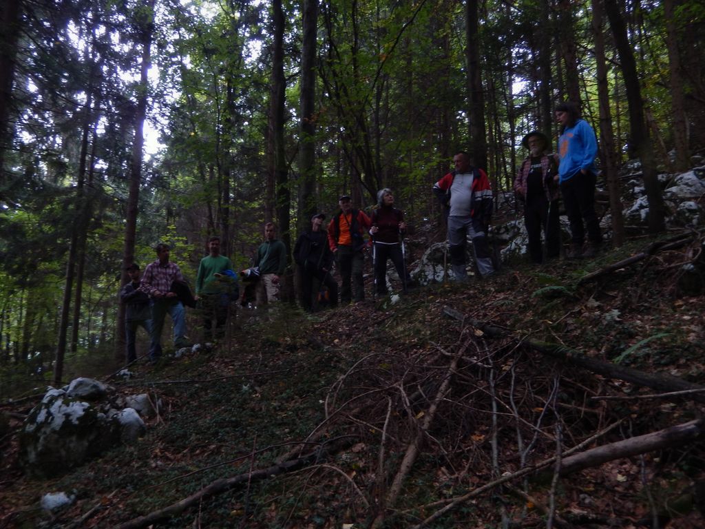 Potem smo se povzpeli do fosilne suhe doline, ki kaže na to, da je narava zelo živa in hitro pride do sprememb. Tam, kjer je nekoč tekel potok, pa so ostale le še oblike in sedimenti. Spregovorili smo tudi o zaselku Kale, ki je dobil ime po teh umetnih kotanjah na kraškem svetu. Namenjeni so bili napajanju živine, ki je s teptanjem tal omogočala, da voda ni poniknila v kraško notranjost.