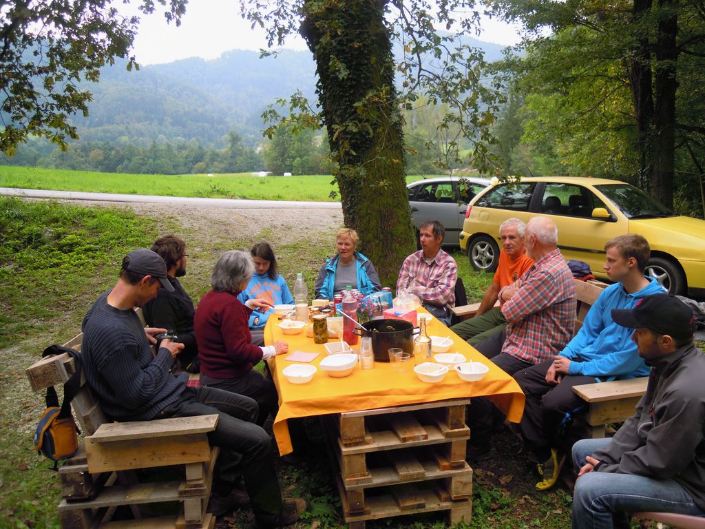 Ob povratku proti Centru smo si v dolini Široko polje ogledali še en višji izvir Globočke oziroma Podgrajščice. Pri Centru sta nas Maks in Gregi pričakala z okusno enolončnico in s čajem. Sledilo je druženje, kjer smo si izmenjali mnenja in ideje za prihodnje dogodke.
