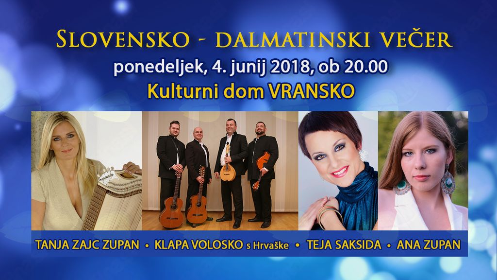 Citrarka Tanja Zajc Zupan praznuje 25-letnico glasbenega ustvarjanja. V Sloveniji so zelo priljubljene tudi dalmatinske pesmi. Zato vas vabimo na koncert SLOVENSKO-DALMATINSKI VEČER, ki bo v Kulturnem domu Vransko v ponedeljek, 4. junija 2018, ob 20. uri.