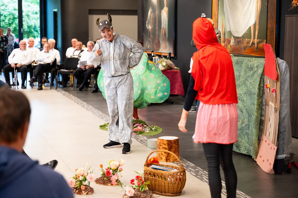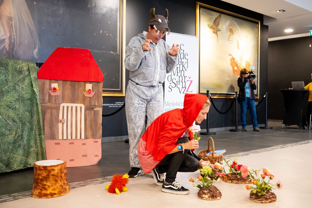 V nadaljevanju programa je dramska skupina vzgojiteljic pod imenom Marionetke odigrala pantomimo, in sicer pravljico Rdeča kapica. Zgodbica je bila tudi brez besed prepoznavna, obiskovalci so se ves čas odzivali. Za njimi so nastopali še obiskovalci z recitacijami, nekaj so tudi zapeli.