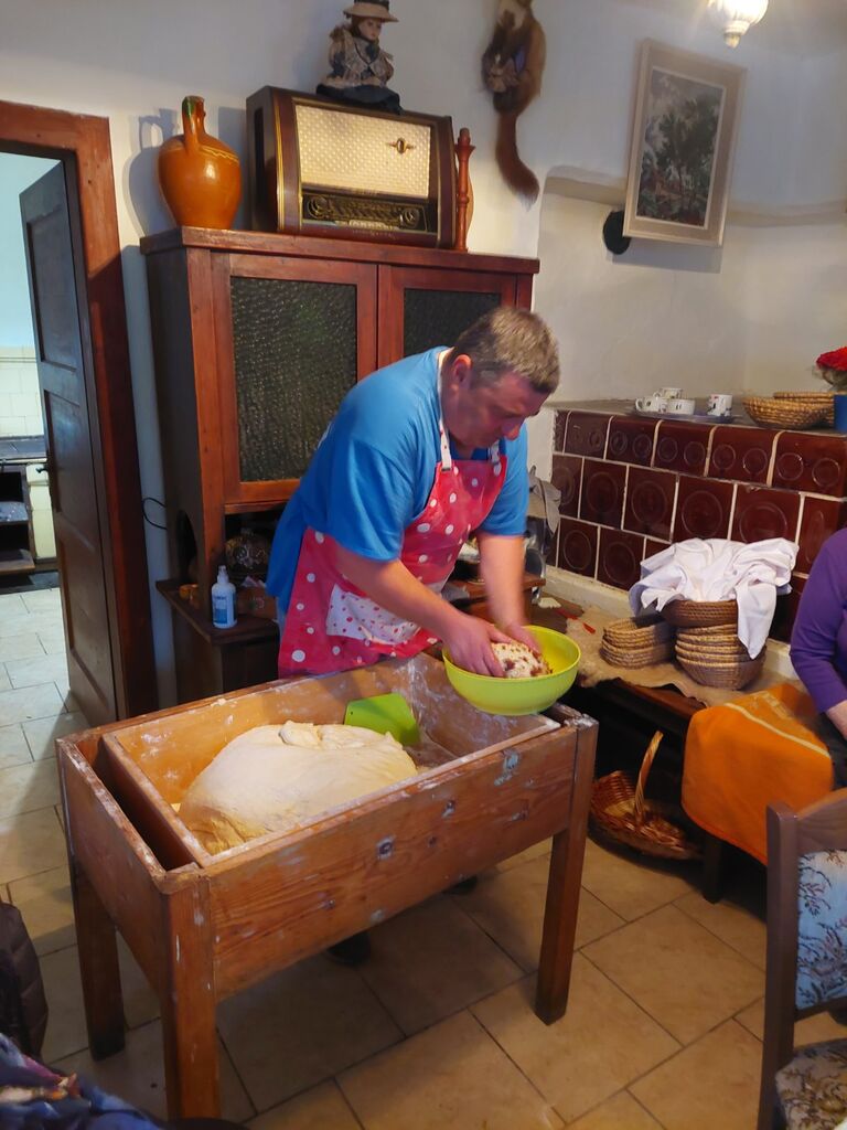 DUTŽO Vransko je imelo v planu dela za leto 2025/2026 tudi delavnico peke kruha v krušni peči. Delavnico smo pripravili v Mlinu pri g. Dragotu in ga. Lojzki Kos. Iz bele moke in tudi z dodatki čebule, orehov, ocvirkov je zamesil kruh g. Marko Somi. Med udeleženci je bilo kar nekaj že izkušenih gospodinj, zato smo si poleg razlage in prikaza, kako nastane dober kruh, izmenjali mnenja in izkušnje. Čeprav je bil hladen in deževen dan, nas ni zeblo, saj je prostor s toplino napolnilo veliko udeležencev in topla krušna peč. Vonj po sveže pečenem kruhu in že sam prostor, ki je spominjal na stare čase, sta marsikomu pričarala spomin na otroška in mlada leta. Na koncu smo pečene hlebce prerezali in poizkusili. Kdor je želel, si ga je lahko odnesel domov in si ga privoščil tudi naslednje jutro pri zajtrku. Vsi udeleženci se za prijetno izkušnjo in lepo preživet popoldan zahvaljujemo gostiteljema in peku.