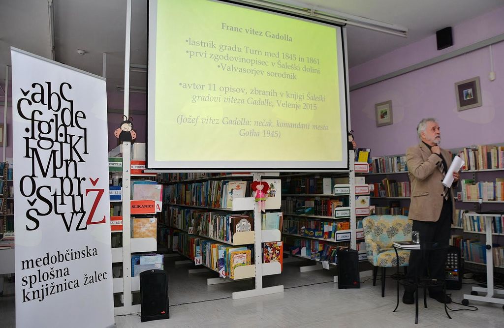 Majski utrip domoznanstva, 15. maja 2017, je v Medobčinski splošni knjižnici Žalec potekal v sklopu Tedna vseživljenjskega učenja. V goste smo povabili Lada Planka, pisatelja, glasbenika in soavtorja knjige Šaleški gradovi viteza Gadolle, ki nam je predstavil nekaj drobcev življenja na velenjskem in na okoliških gradovih pred dvesto leti. Vitez Gadolla je bil sredi 17. stoletja lastnik gradu Turn in se je ljubiteljsko ukvarjal z zgodovino in si s tem prislužil naziv »štajerski Valvasor«. V arhivu v Gradcu je bilo odkritih kar nekaj njegovih zapisov, vezanih na Šaleško in Spodnje Savinjsko dolino. Leta 2015 je knjižnica Velenje izdala knjigo Šaleški gradovi viteza Gadolle. Avtorji tega, tudi za naše območje pomembnega dela, so Boris Golec, Lado Planko, Tone Ravnikar in Peter Zimmermann. Osrednji del knjige predstavljajo Gadollfovi opisi gradov od srednjega veka naprej. Po uvodnem pozdravu Karmen Kreže nam je Lado Planko s pripovedovanjem zgodb pričaral grajsko življenje naših prednikov.