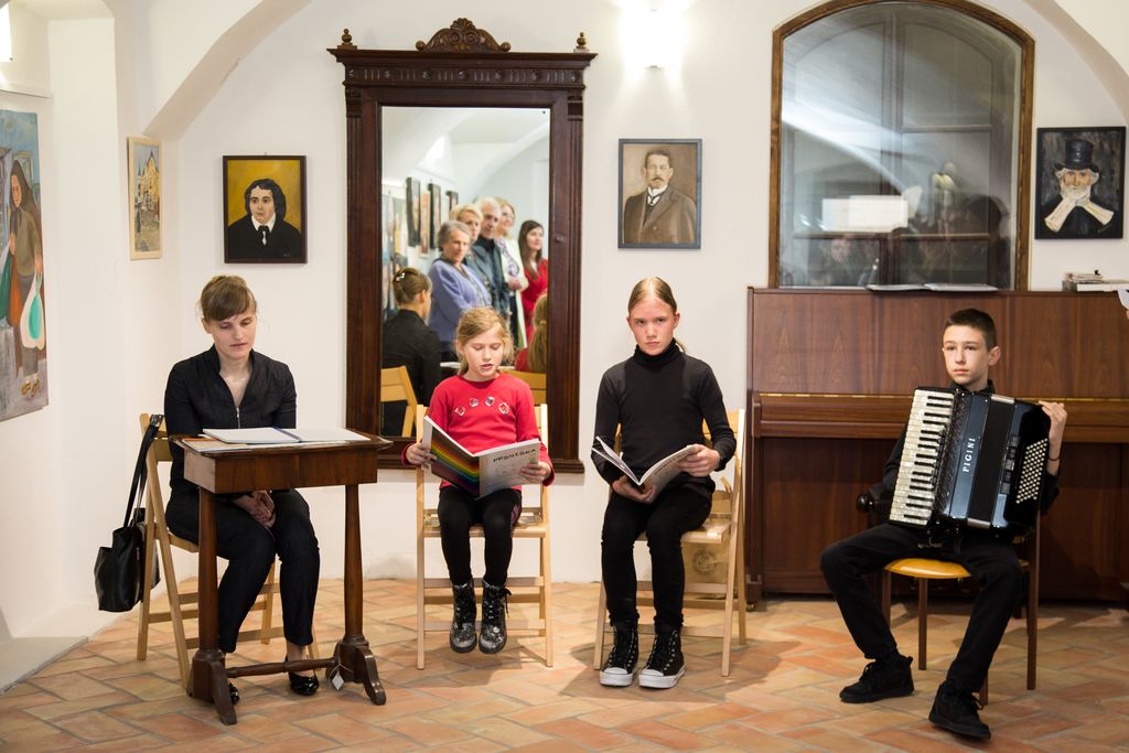 V kulturnem programu ob odprtju razstave so sodelovali harmonikar Dorian Dobrovoljski, učenec Glasbene šole Fran Korun Koželjski Velenje, ki je nastop prejel kot del nagrade za osvojeno prvo mesto na tekmovanju mladih glasbenikov Temsig. Pesmi iz zbirke Pesniška pobarvanka sta recitirala Živa in Bor Leban, odlomek zgodbe iz zbirke Drhteče srce pa je v brajici prebrala Sanja Kos, predsednica Medobčinskega društva slepih in slabovidnih Celje.