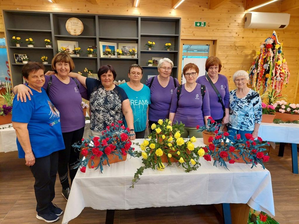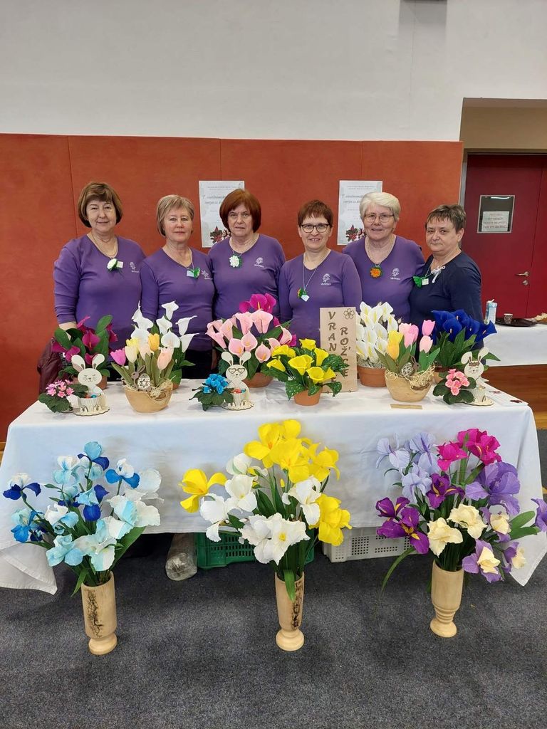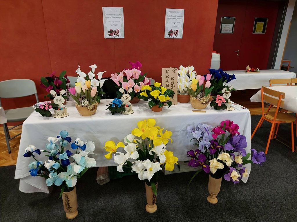 Sredi intenzivnih priprav na vseslovensko razstavo cvetja iz krep papirja, ki bo konec maja na Vranskem, smo se v mesecu aprilu Vranske rož’ce predstavile na dvodnevni tradicionalni razstavi cvetja, ki ne ovene na Pragerskem. Obiskovalcem smo se predstavile s spomladanskimi raznobarvnimi irisi in kalami.V prijetnem druženju z razstavljavci je vikend kar prehitro minil. Polne ustvarjalne energije smo nato v cvetnem tednu izvedle še tri delavnice izdelovanja cvetja za velikonočne butarice. Družile smo se z oskrbovanci doma Nine Pokorn v Grmovju, s cvetjem in butaricami ter druženjem pa polepšale dopoldan oskrbovancem Doma svetega Rafale na Vranskem. Za konec tedna smo se pridružile še turističnemu društvu v Vrbju na delavnici izdelovanja cvetja za velikonočne butarice in jih po navodilih cvetličarke iz Šempetra tudi same izdelale. Konec meseca smo si ogledale razstavo balkonskega cvetja iz krep papirja v Gančanih in se pridružile množici obiskovalcev pri postavitvi majoša. To je tradicionalni dogodek v kraju, ki vsako leto združi vse prebivalce in nam, opazovalcem, prikaže njihov običaj v tradicionalni podobi. Gostoljubnost domačinov nas vsako leto prepriča, da se vrnemo in se jim pridružimo pri praznovanju prvega maja.