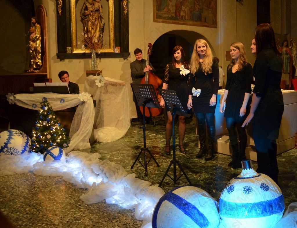 V duhu pričakovanja božiča so nas dekleta Dekliške vokalne zasedbe SOLO s svojo pesmijo popeljale v pravljično zimsko deželo, nam pričarale bel božič in nam zaželela vse dobro v novem letu. Na odru so se jim pridružili trije nasmejani fantje, ki so jih s svojimi glasbili spremljali skozi celoten koncert. Za klavirjem Franci Grenko, s kontrabasom David Breznik, na kitari pa Anže Ribič. Poleg njih pa so s svojimi moškimi glasovi dvignili temperaturo tudi fantje Okteta Kajuh iz Celja. Da je vse teklo gladko, je poskrbel simpatični povezovalec programa Matevž Križnik. Po zaključenem koncertu so se obiskovalci pogreli ob kuhanem vinu in vročem čaju ter se malo posladkali.