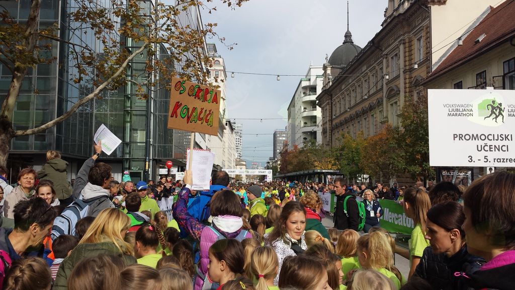 Že sedmo leto smo z Osnovno šolo Vransko-Tabor sodelovali na Ljubljanskem maratonu. Vsako leto se več otrok odloči sodelovati na tej vse bolj množični tekaški prireditvi v naši prestolnici. Prednostni nalogi naše šole sta gibanje in spoštovanje. Z vse večjo udeležbo tako na Teku za smeh na Vranskem, kjer se je veliko starejših učencev odločilo teči na 5 in 10 km progi, kot na Ljubljanskem maratonu lahko povemo, da dosegamo napredek. Tudi spoštovanje je pri vsej zadevi napredovalo. Na prireditvi, kjer je sedem tisoč osnovnošolskih tekačev na prireditvenem prostoru, je potrebno spoštovati pravila in dogovore. Le tako smo vsi nasmejani prispeli v cilj. Ko smo hiteli proti prireditvenemu prostoru, so trije učenci spoštovali pravila in hodili v koloni, ki se je pomikala proti Kongresnemu trgu, le v enem trenutku niso zaznali, da je kolona zavila na desno. Vem, da jim je bilo v trenutku, ko so ugotovili, da ni nikjer nikogar od naših, zelo težako. Spomnili pa so se dogovora in ravnali zelo pametno. Poiskali so nekoga, ki je po ozvočenju povedal, da nas trije učenci čakajo na štartu Lumpi teka. Toda skupina ostalih učencev in učitelji smo bili predaleč od ozvočenja. Nismo se našli vsaj pol ure in vse nas spremljevalce, bratce in sestrice nas je zelo skrbelo, toda kjer je pogum, je tudi sreča. Naš nekdanji učenec in zelo dober tekač, sedaj pa novinar, je fante odpeljal na štart dečkov prvega in drugega razreda. Hvala še enkrat, Luc Zalokar. Luc nas je omenil tudi v članku časnika Delo in tako smo postali zaradi tega dogodka malce slavni ... Sicer so ti trije fantje odtekli brez majice in številke, so pa vendarle sodelovali.