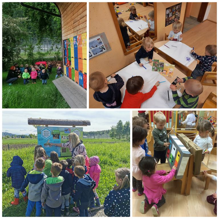 Pripravile smo jim različne dejavnosti, ogled čebelnjaka (ob šolskem igrišču) in filma, ki se je odvijal v njem, obenem pa smo sodelovali z zunanjimi izvajalci, člani čebelarske zveze.