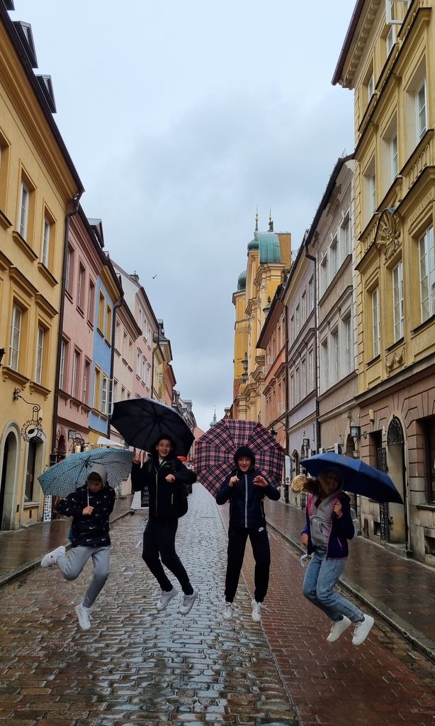 Poljsko smo obiskali 15. 5. 2023. Naša pot se je začela na letališču Brnik. Tja smo prispeli okoli 10.45. Med čakanjem smo skupaj igrali namizni nogomet. Bilo je zelo zabavno. Leteli smo približno eno uro in pol. Ko smo prispeli, nas je na letališču pričakala poljska učiteljica. Do Winnice je bila zaradi gostega prometa kar dolga pot. Ko smo prispeli, so nas pred šolo pričakale družine, ki so nas gostile.