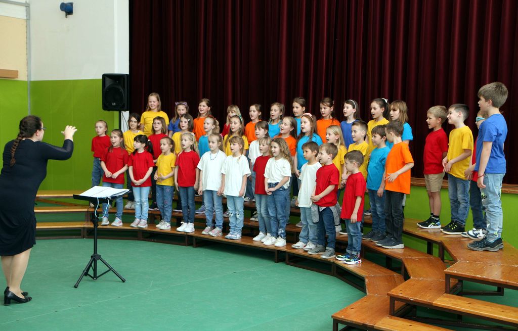 Na sliki: Nastop Mlajšega otroškega pevskega zbora OŠ Vransko-Tabor, ki ga vodi zborovodkinja Danijela Jeršič.