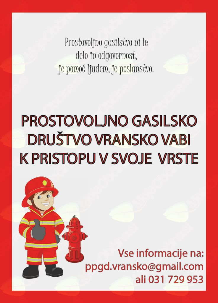 Prav tako vabimo tudi vse tiste, ki želite svoj prosti čas posvetiti delu z gasilsko mladino, saj je od le-te odvisna požarna varnost občine v prihodnosti.