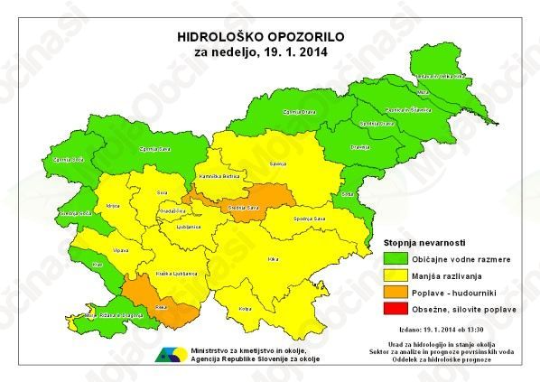 Hidrološko opozorilo Agencije RS za okolje za nedeljo, 19. 1. 2014