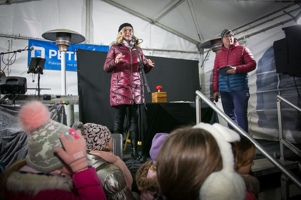 Oder so najprej oživili predšolski otroci, sledil je županjin nagovor, ki ga je sklenila s prižigom lučk. Pri odštevanju in pritisku na velik rdeč gumb so ji pomagali najmlajši, ki so tudi okrasili smreko. Ko je trg zasijal v praznični podobi, smo videli predstavo Štrikec in prisluhnili karaokam. Za presenečenje je poskrbela tudi županja, ki je skupaj s hčerjo zapela. Moderator Denis Oštir je po zaključenem programu mikrofon prepustil domačinu Jožetu Cenclju, ki je z res obširnim glasbenim repertoarjem še dodatno poskrbel za veselo vzdušje.