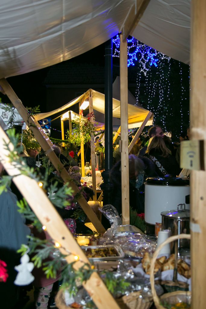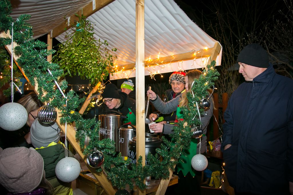 Občina Vransko je ob tej priložnosti prvič postavila svoje stojnice. Da niso samo lepe, ampak tudi zmogljive, smo se ta večer lahko prepričali. Ponudba na dvanajstih stojnicah, ki si jih je delilo štirinajst društev in občinska uprava, je bila pestra in za vse okuse. Nizkim temperaturam primerno je bilo največje povpraševanje po kuhanem vinu, vročem ginu, čaju in tekočem jabolčnem zavitku, otroci pa so se sladkali s palačinkami, carskim pražencem, ocvrtimi jabolki. Manjkalo ni niti drugih sladkih in slanih prigrizkov, gneča pa je bila tudi okrog velikega lonca z golažem.